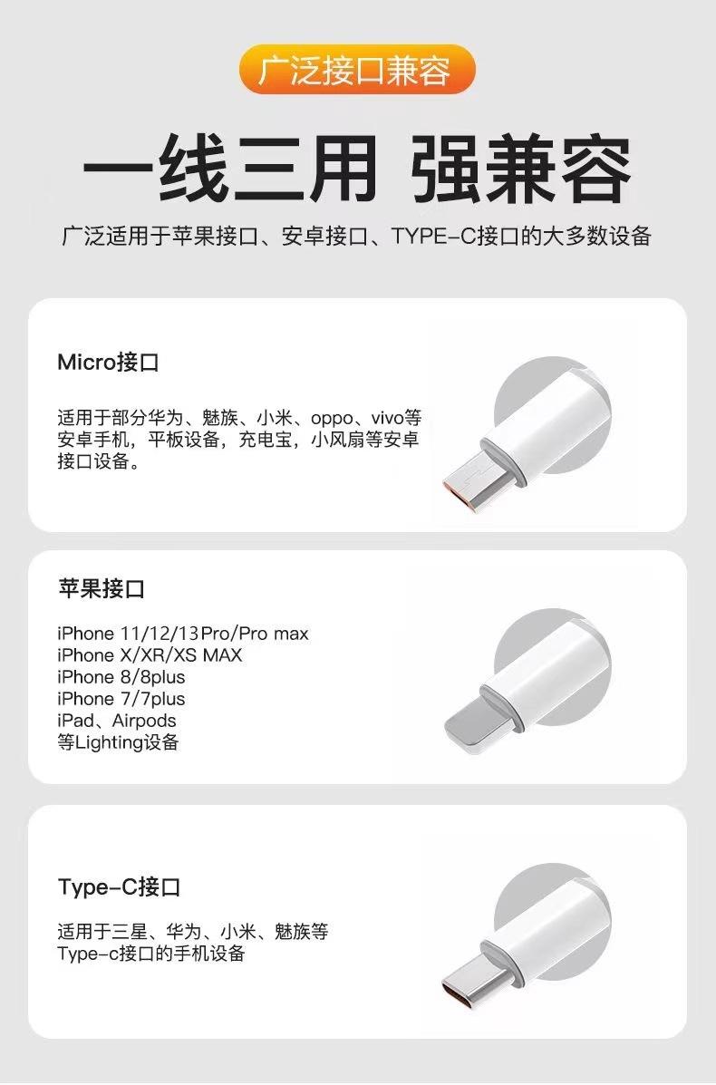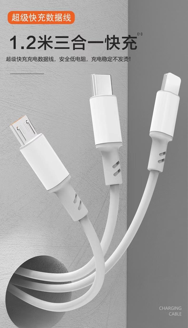 Cable de Datos de Carga Rápida de 66W Uno a Tres Adecuado para Android/Typec/Apple 6A Cable Tres en Uno para Teléfono Móvil Cable de Carga