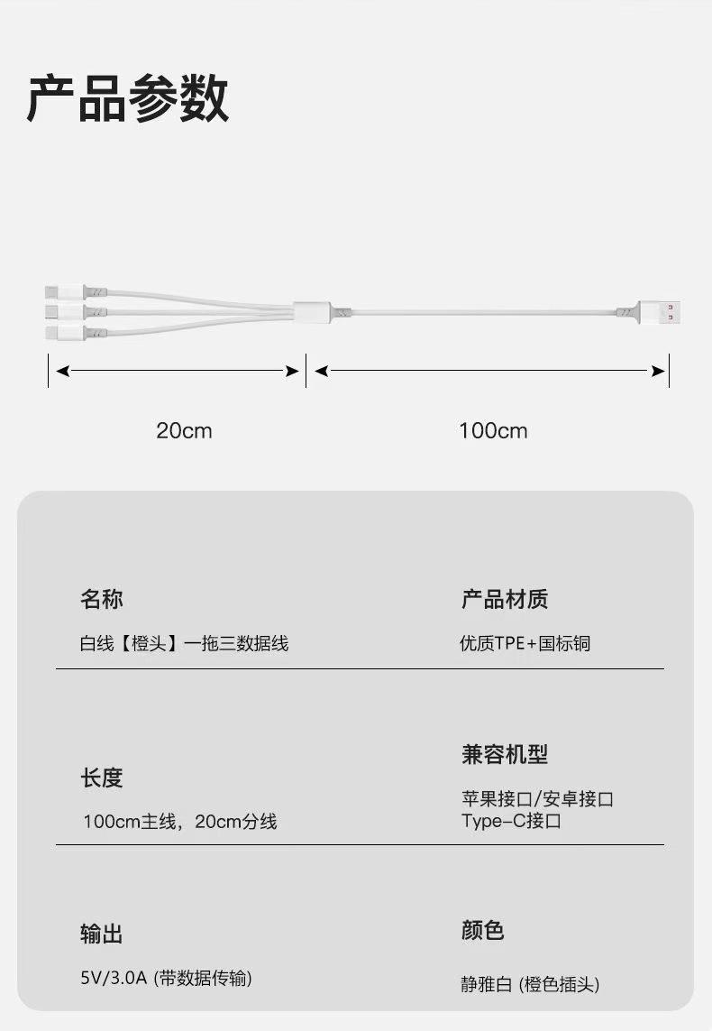 6A One-to-Three Data Cable (Orange Interface 1.2m) Naked, 6A One-to-three data cable (orange interface 1.2m) bag