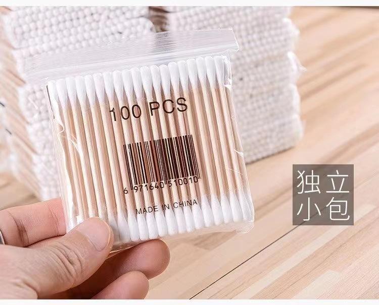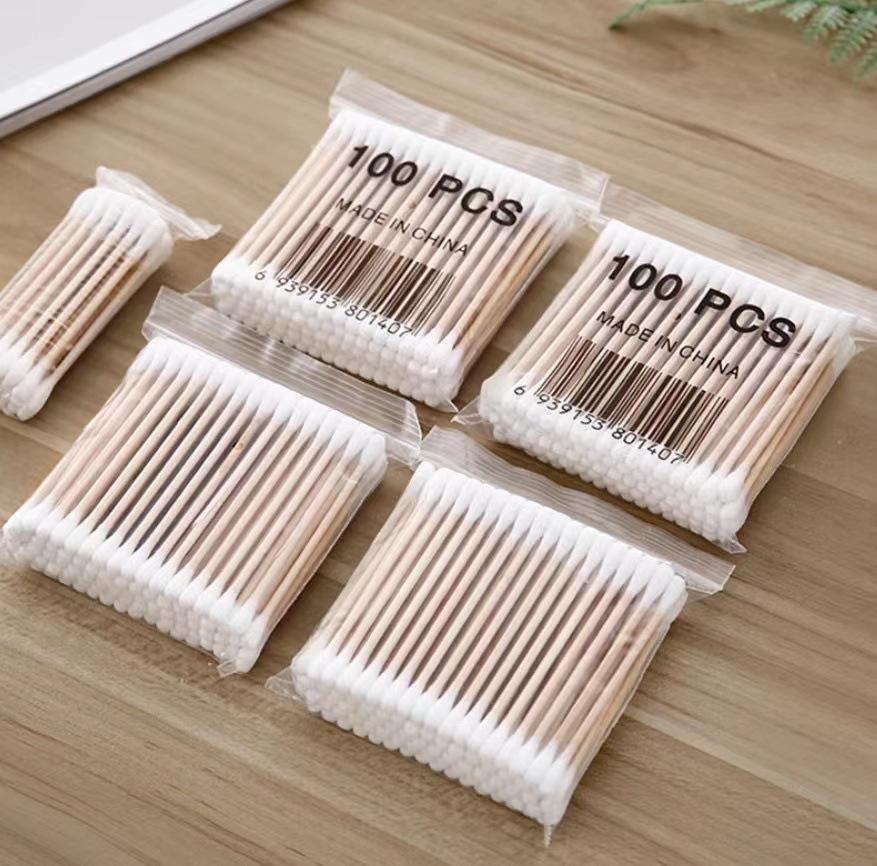 Hisopo de algodón de doble cabeza en bolsa para quitar los oídos, hisopo de algodón desgrasado, cabeza redonda, 100 hisopos de algodón desechables profesionales de belleza