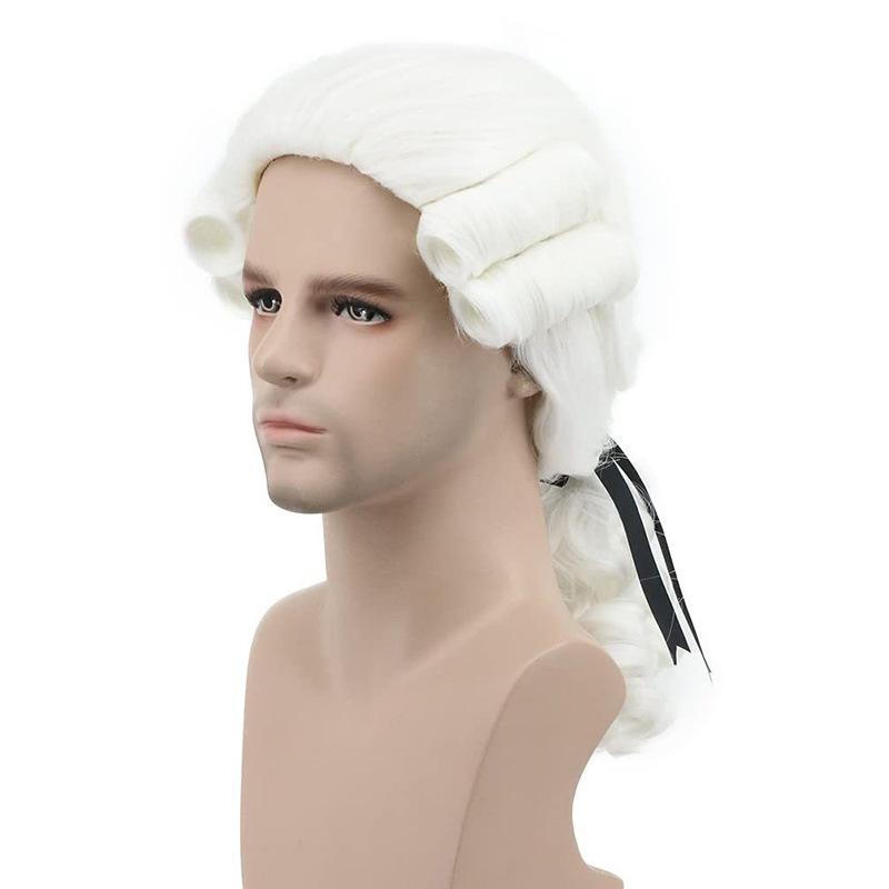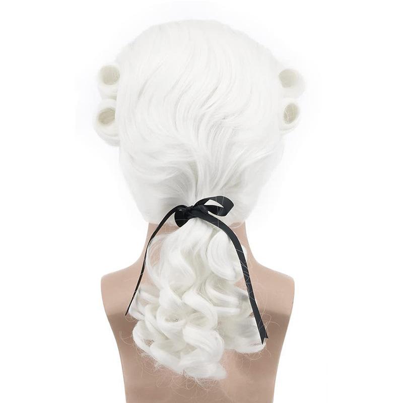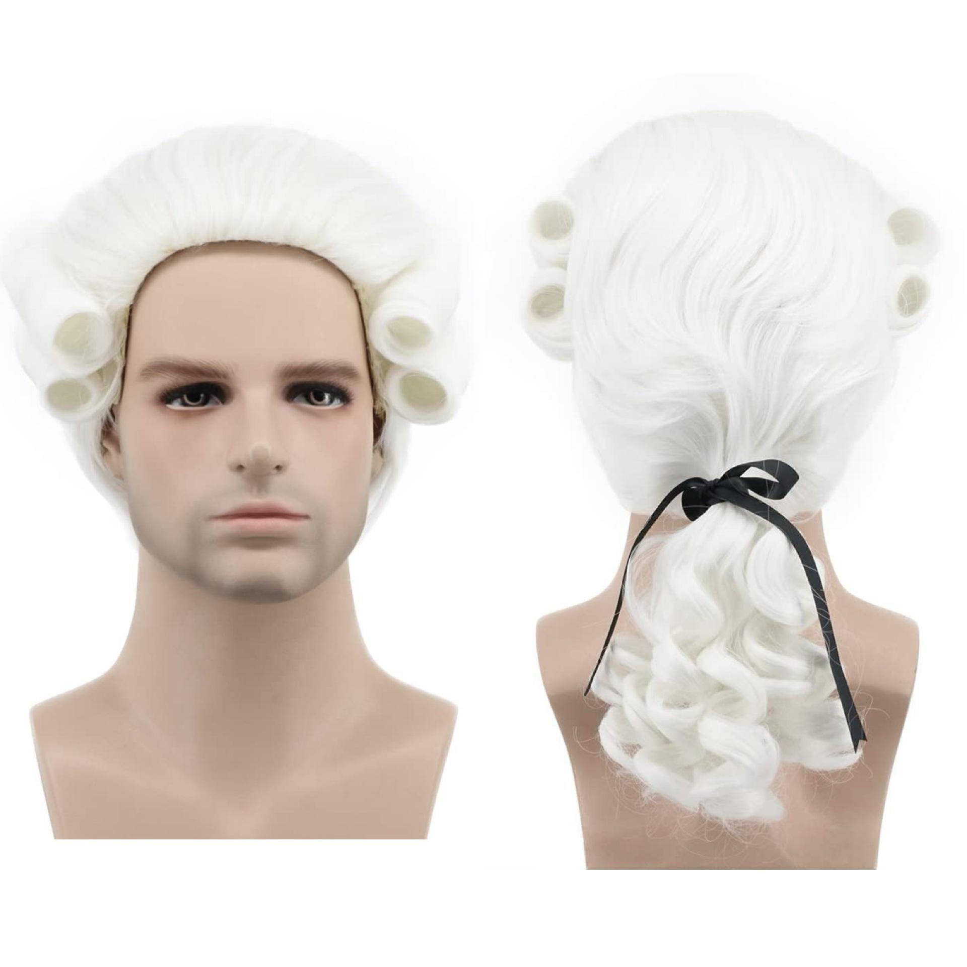 Peluca de carnaval navideño con trenza grande rizada y cola de caballo, peluca de juez, peluca de abogado, peluca para cubrir toda la cabeza.