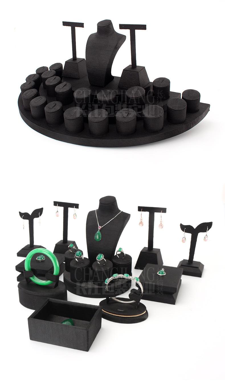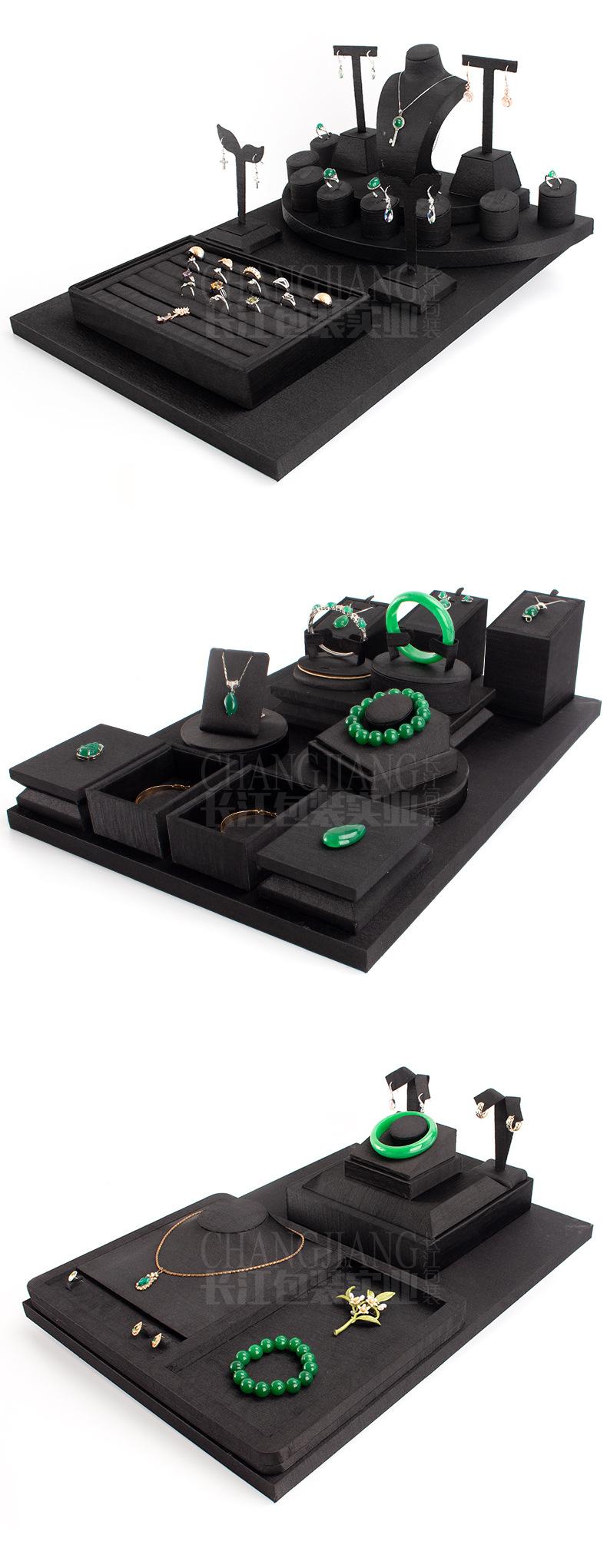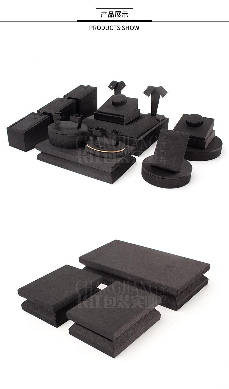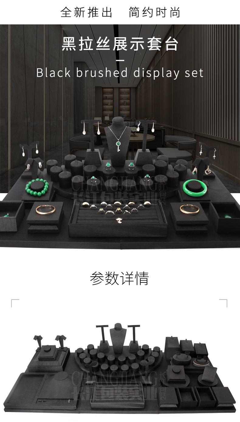 Accesorios de exhibición de joyas de PU negro cepillado, conjunto de accesorios de exhibición para collar, colgante y mostrador de joyas