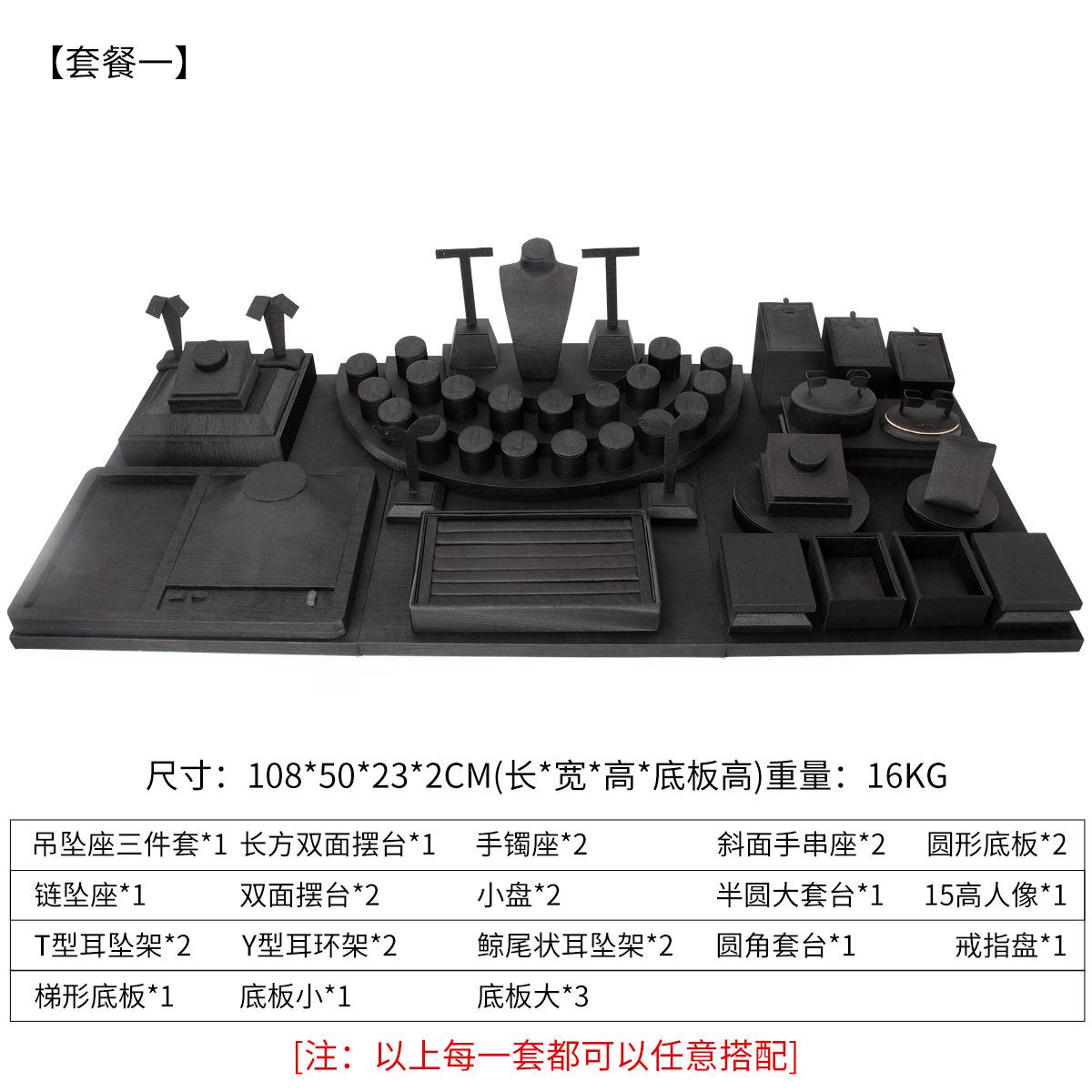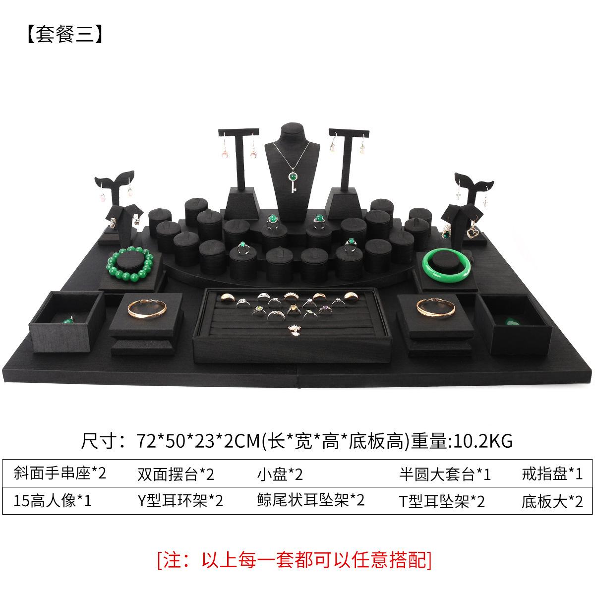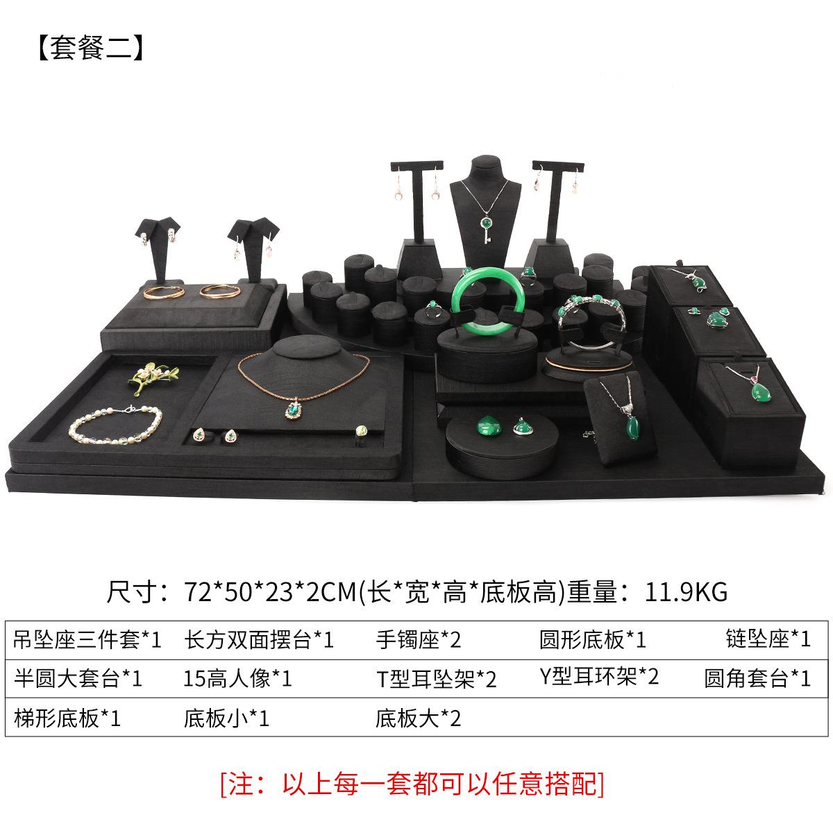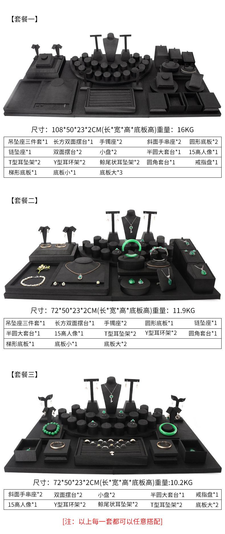 Accesorios de exhibición de joyas de PU negro cepillado, conjunto de accesorios de exhibición para collar, colgante y mostrador de joyas