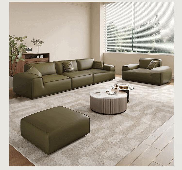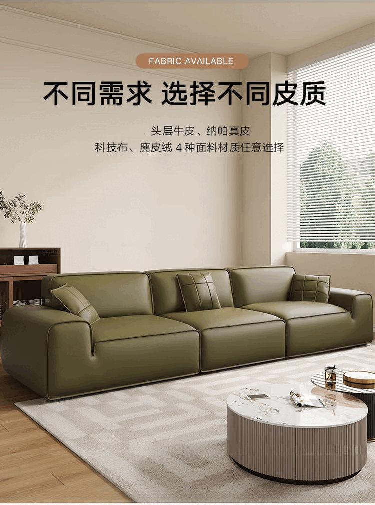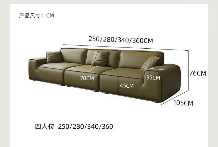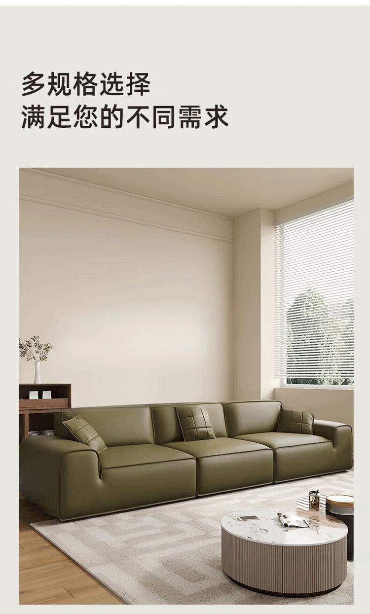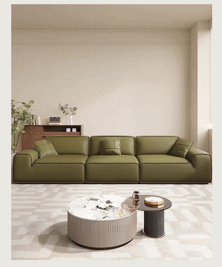 Sofá moderno grande de cuero de vaca negro, minimalista italiano, de primera capa, de piel de vaca, para sala de estar, apartamento grande y pequeño, sofá de fila recta con bloques de tofu