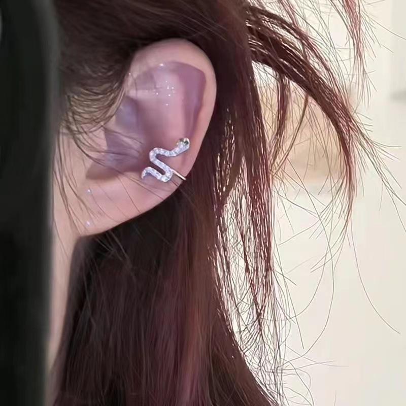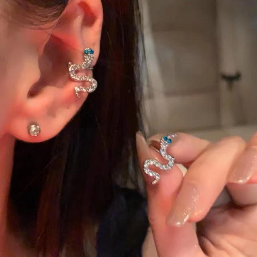 [Left ear] full diamond snake ear clip, [Right ear] full diamond snake ear clip, [A pair] full diamond snake ear clip