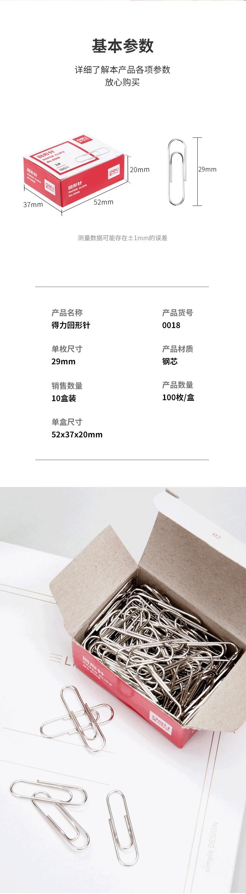Clip de papel de papelería Deli Clip de papel de color Clip de papel grande de finanzas de oficina Aguja trasera de forma especial Aguja en forma de U