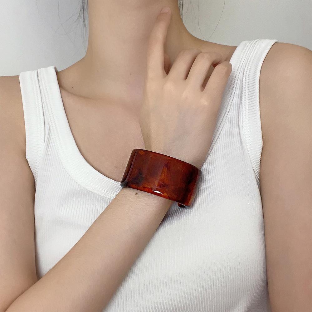 Pulsera acrílica abierta de nicho retro de alta gama con viñeteado irregular, de ala ancha, para mujer, pulsera de moda de temperamento simple