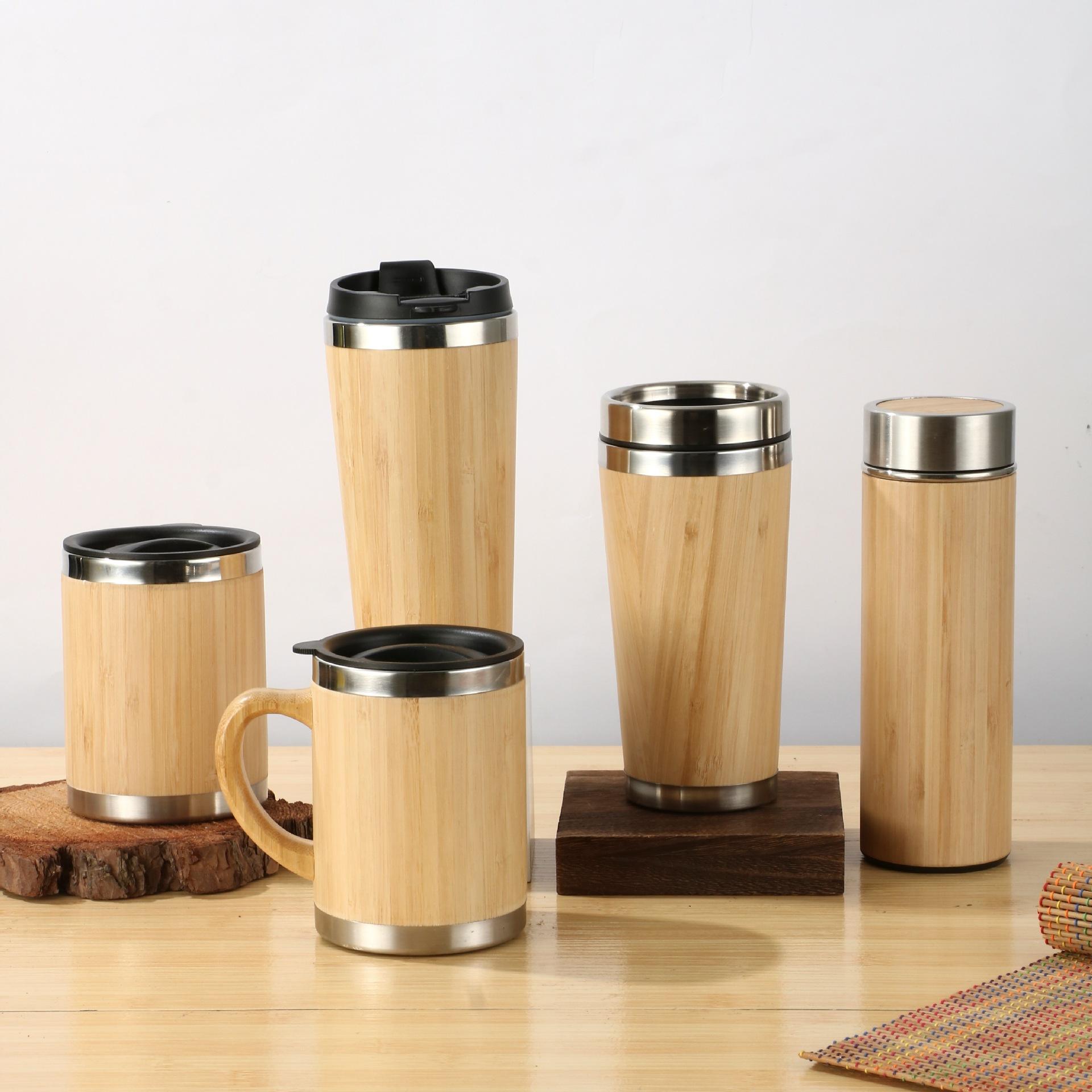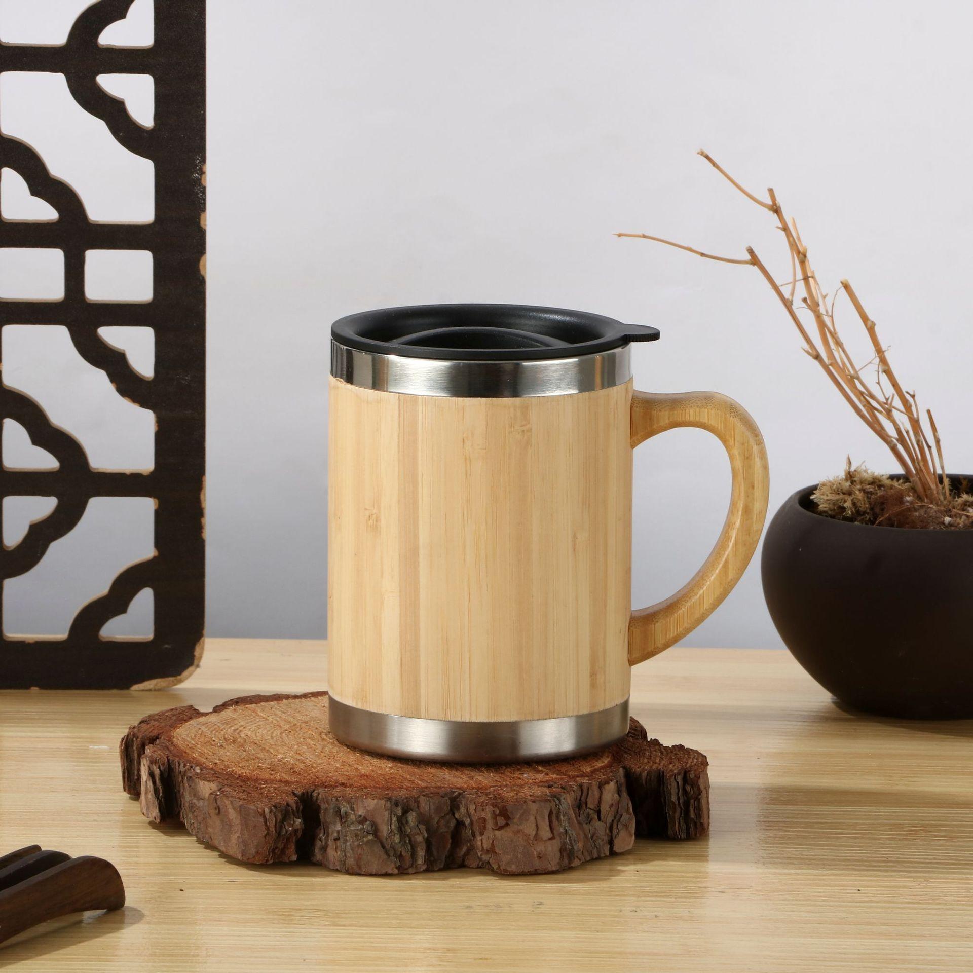 Taza térmica de bambú al vacío con asa de acero inoxidable, de gran capacidad, para oficina, regalo, venta al por mayor, disponible transfronterizamente.