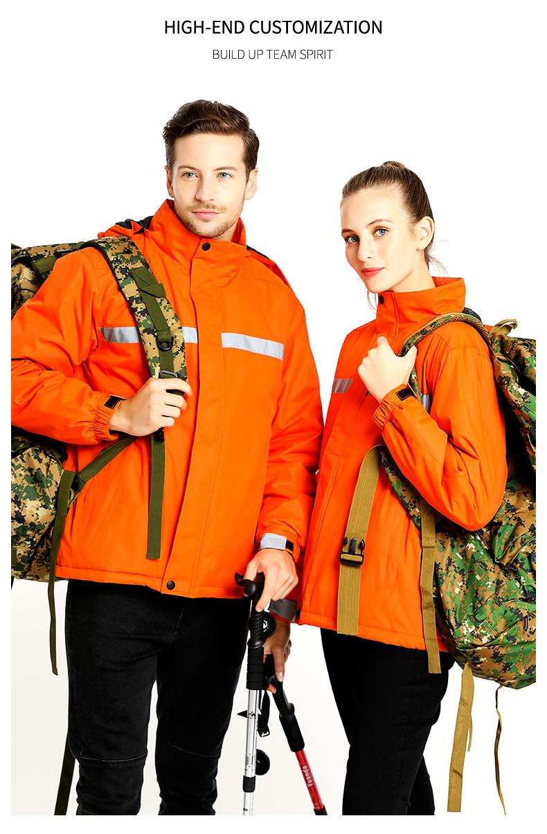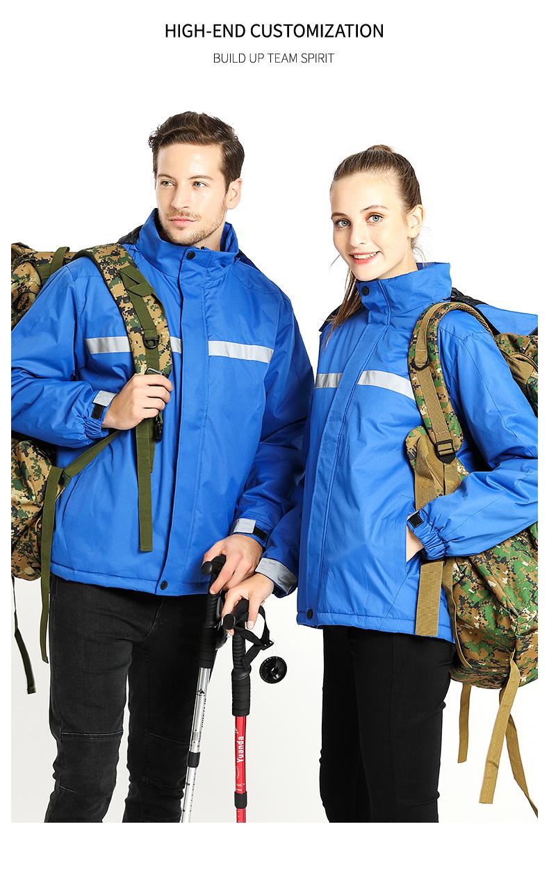 Chaqueta para exteriores tres en uno, ropa de montañismo impermeable y gruesa, ropa de trabajo con publicidad impresa y logotipo bordado. |