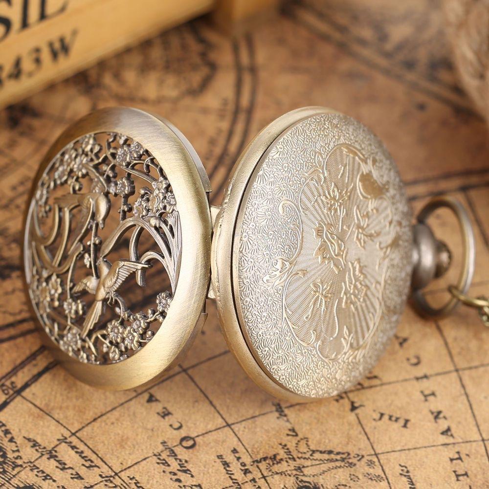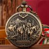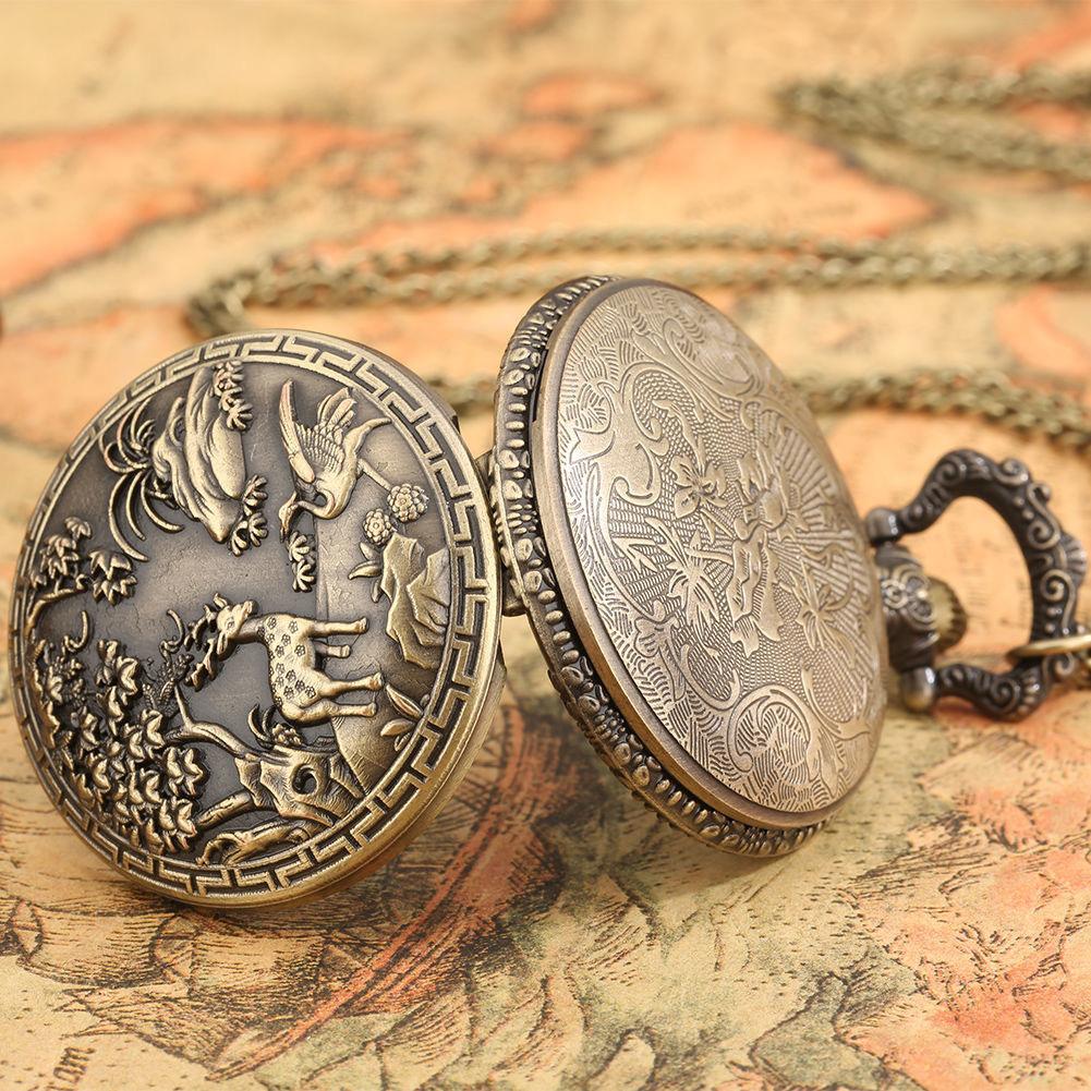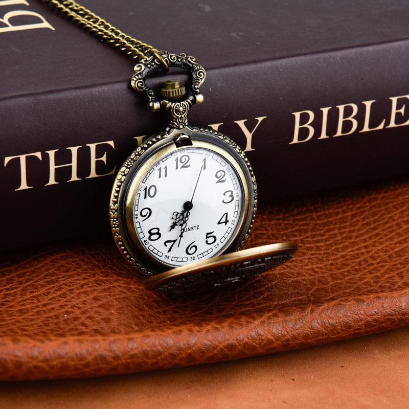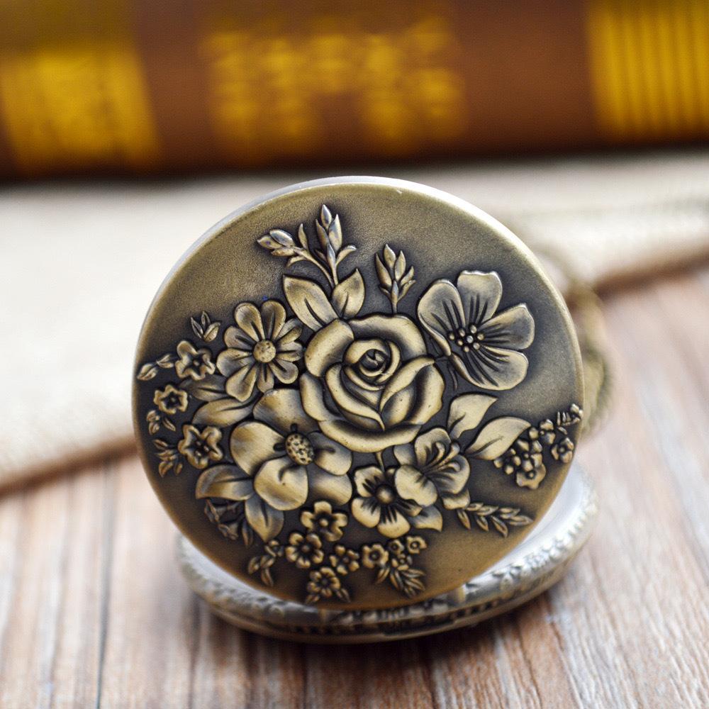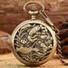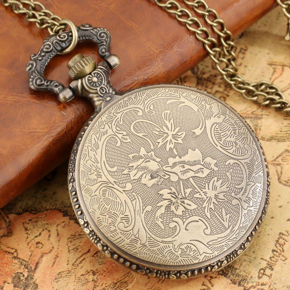 Reloj de bolsillo clásico vintage de bronce antiguo con relieve tridimensional y tapa abatible, reloj colgante conmemorativo nostálgico para estudiantes.