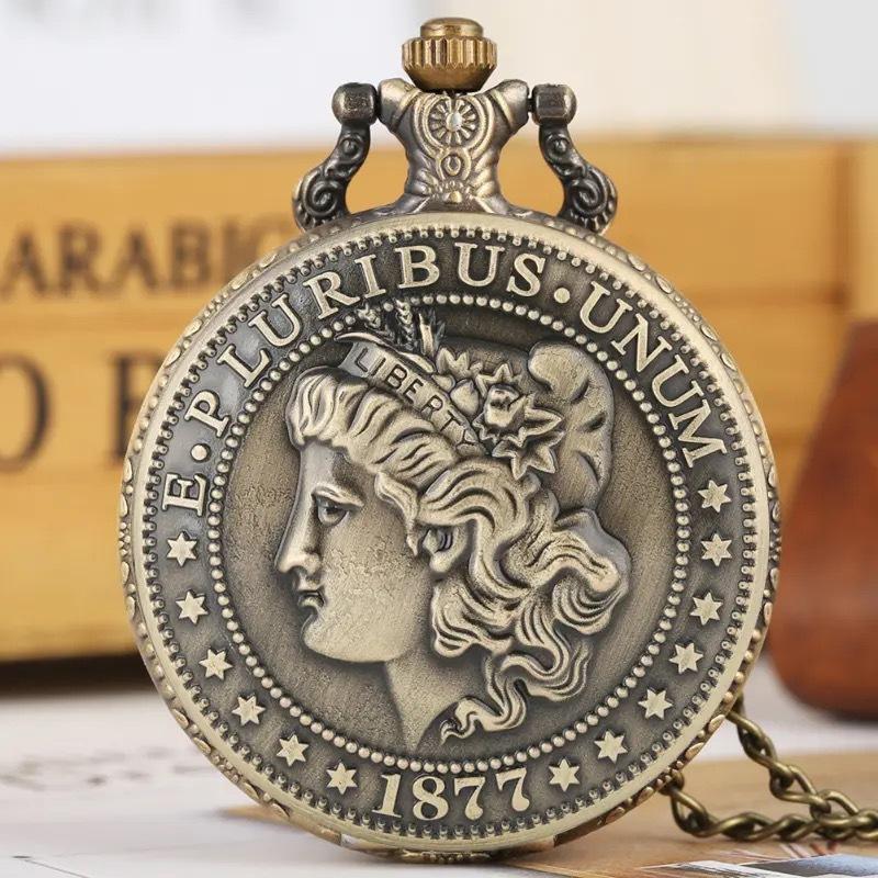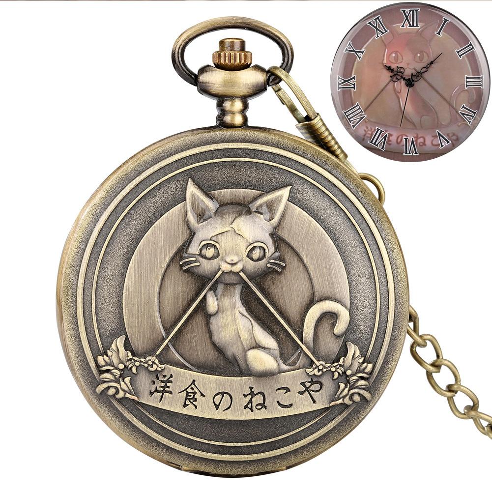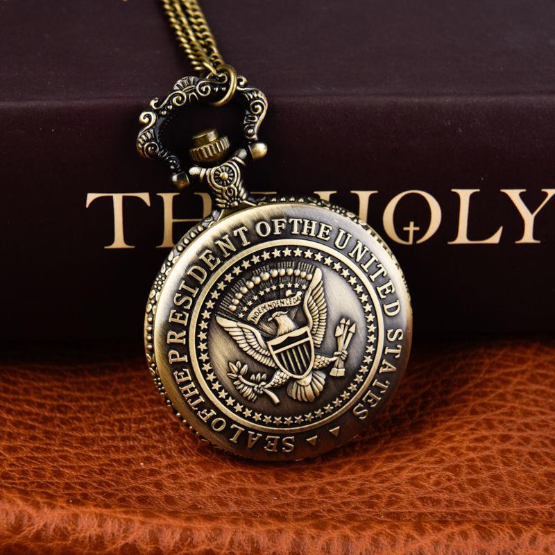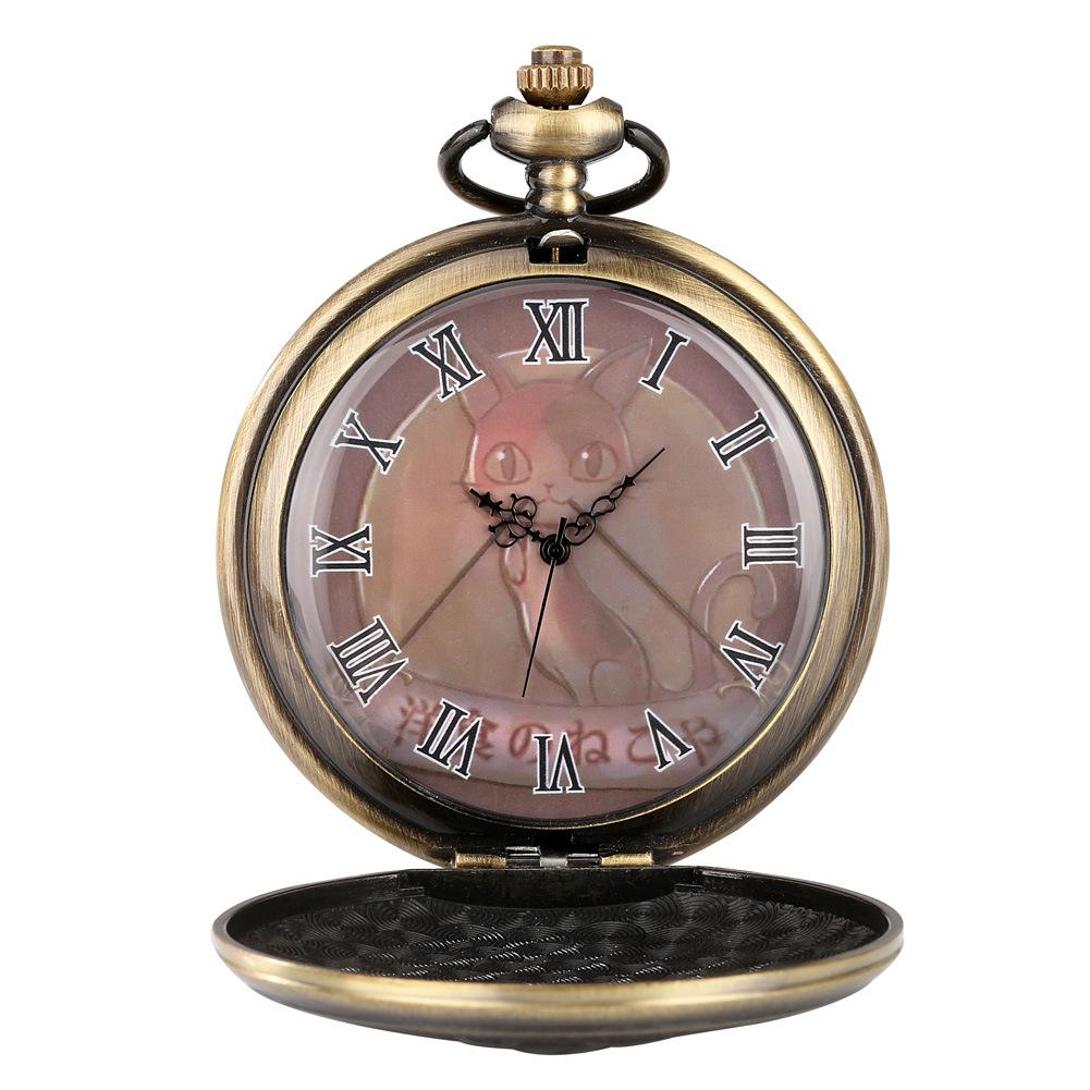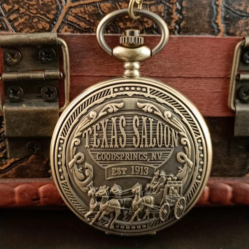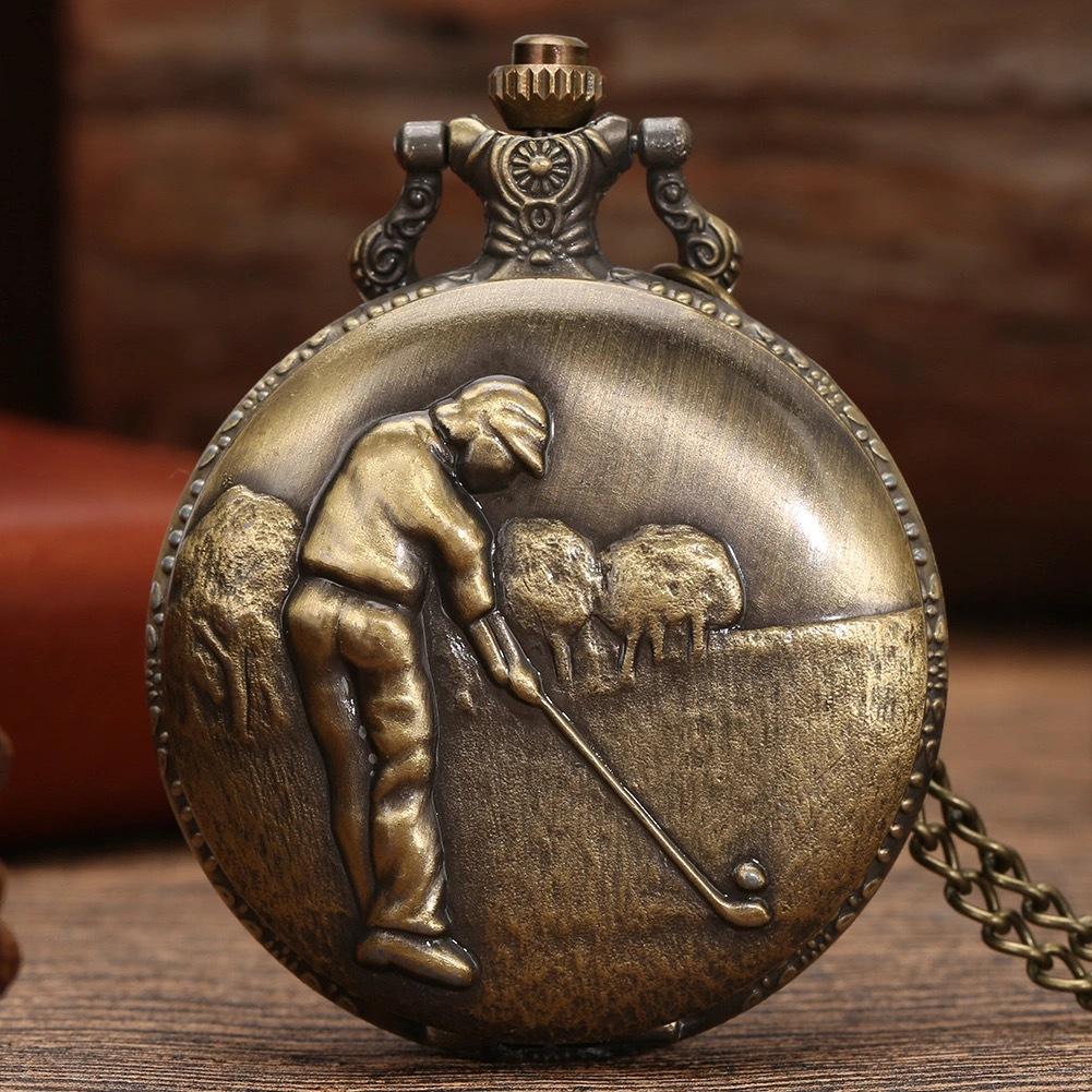 Reloj de bolsillo clásico vintage de bronce antiguo con relieve tridimensional y tapa abatible, reloj colgante conmemorativo nostálgico para estudiantes.