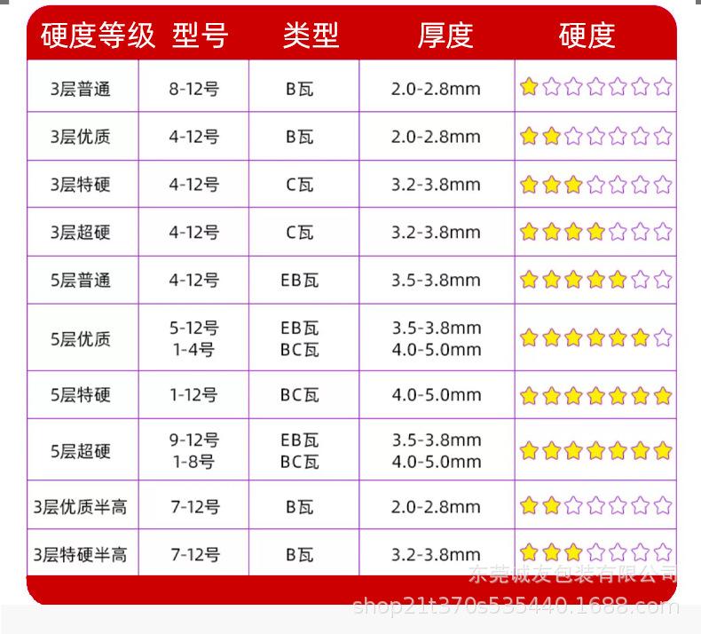 Five-layer extra hard box, Five-layer ordinary box, Three-layer ordinary box, Five-layer high-quality box, Thr...