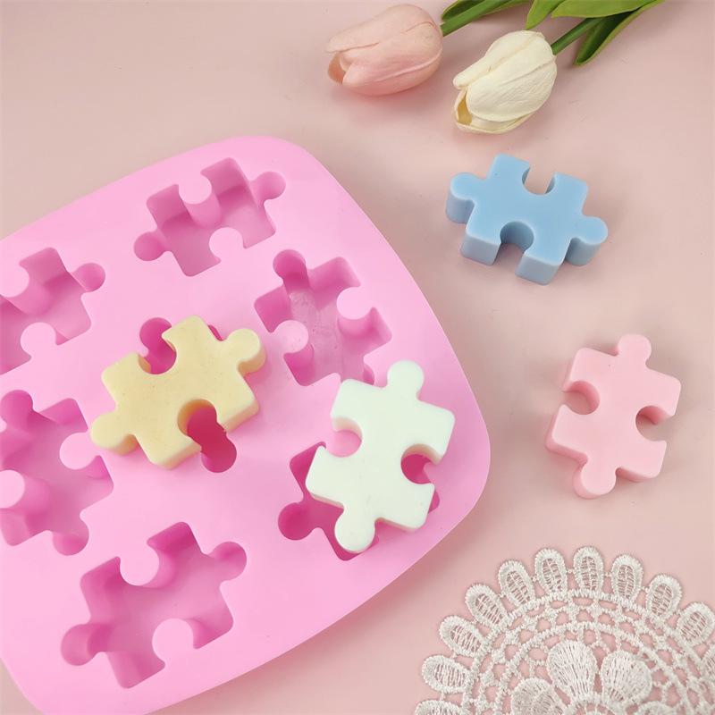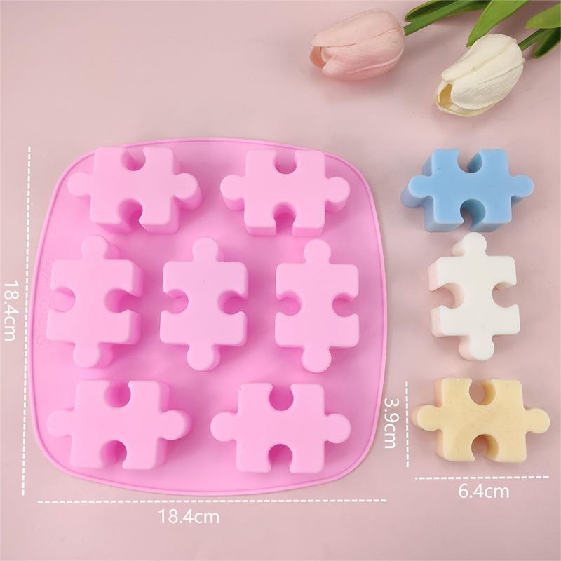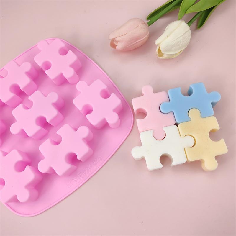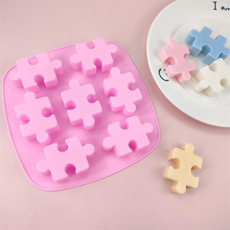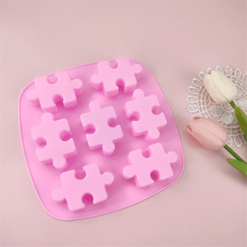 nombre:Rompecabezas de 7 piezas molde de silicona creativo bandeja de hielo molde para pastel de chocolate molde para jabón hecho a mano molde para hornear caramelo pudín
