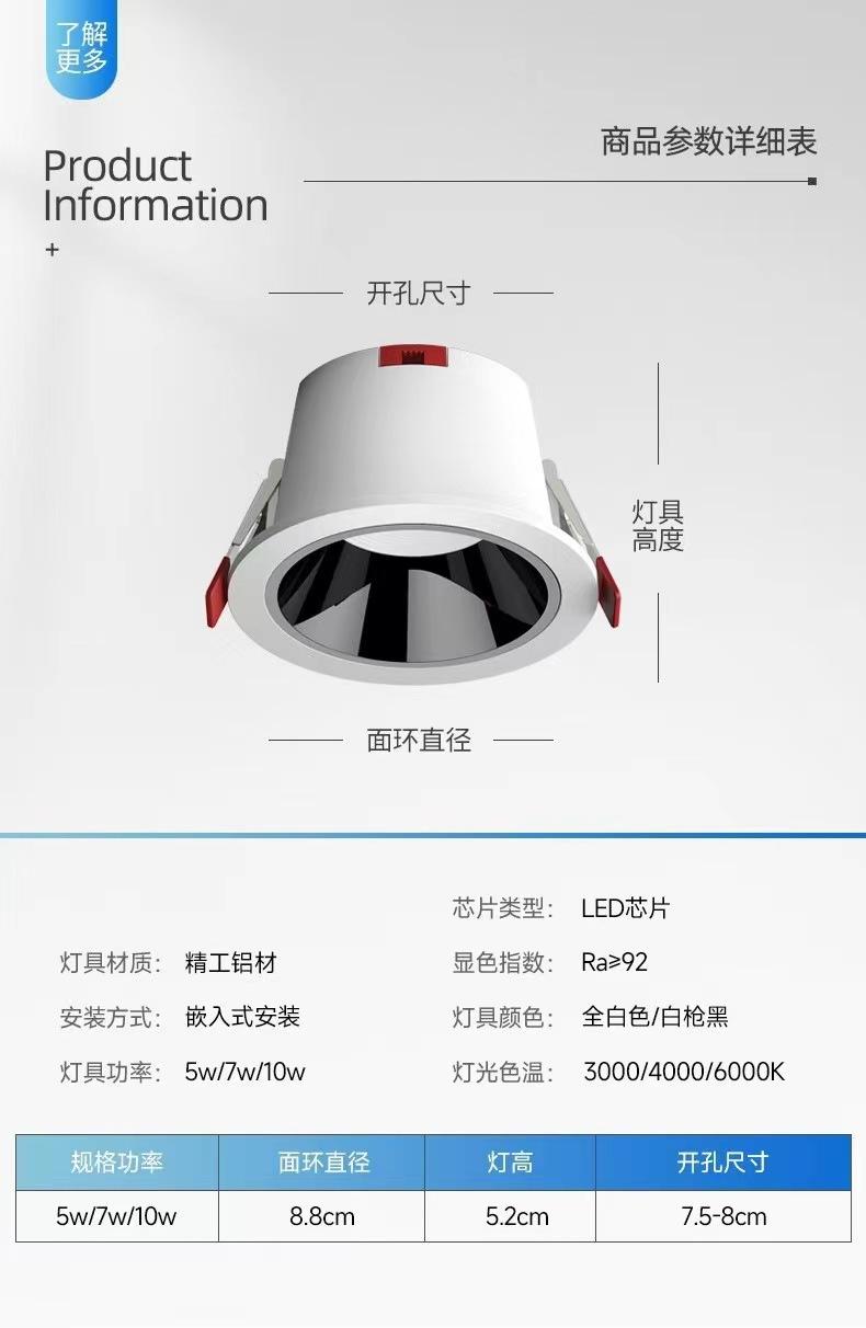 Downlight Antideslumbrante Luz de Techo LED Empotrada Foco Doméstico Foco de Marco Ultradelgado Luz de Techo Tricolor Regulable