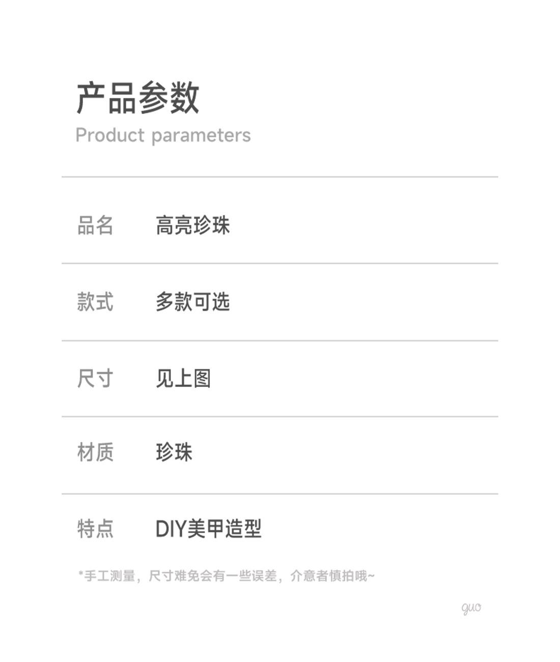 Joyas de perla para decoración de uñas, textura blanca pura de alta calidad, tamaño pequeño, perla de alto brillo, sin piel, accesorios para decoración de uñas mixtos