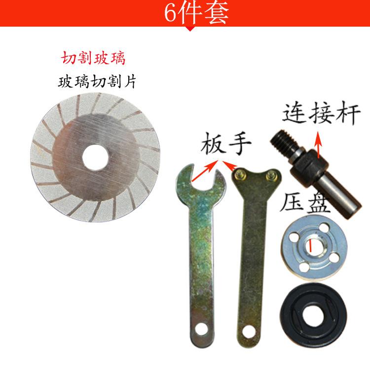 La biela en el paquete (la predeterminada es de 10 mm. Si necesita un mango redondo de 6 mm, deje un mensaje al servicio de atención al cliente). La placa de presión en la biela es adecuada para discos de corte con un agujero interior de 16 mm y 20 mm.