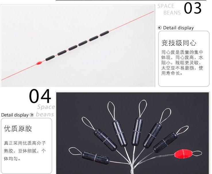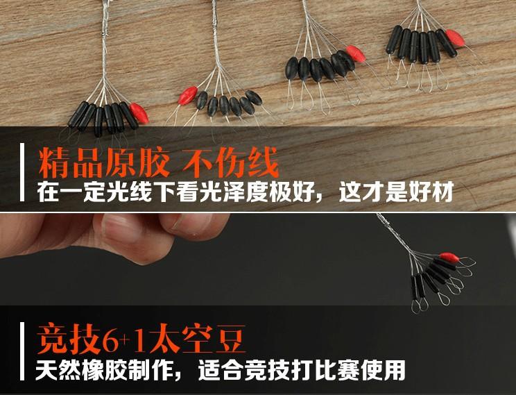 6+1 Space Bean negro cilíndrico en forma de aceituna, goma Space Bean, suministros de pesca, accesorios de pesca