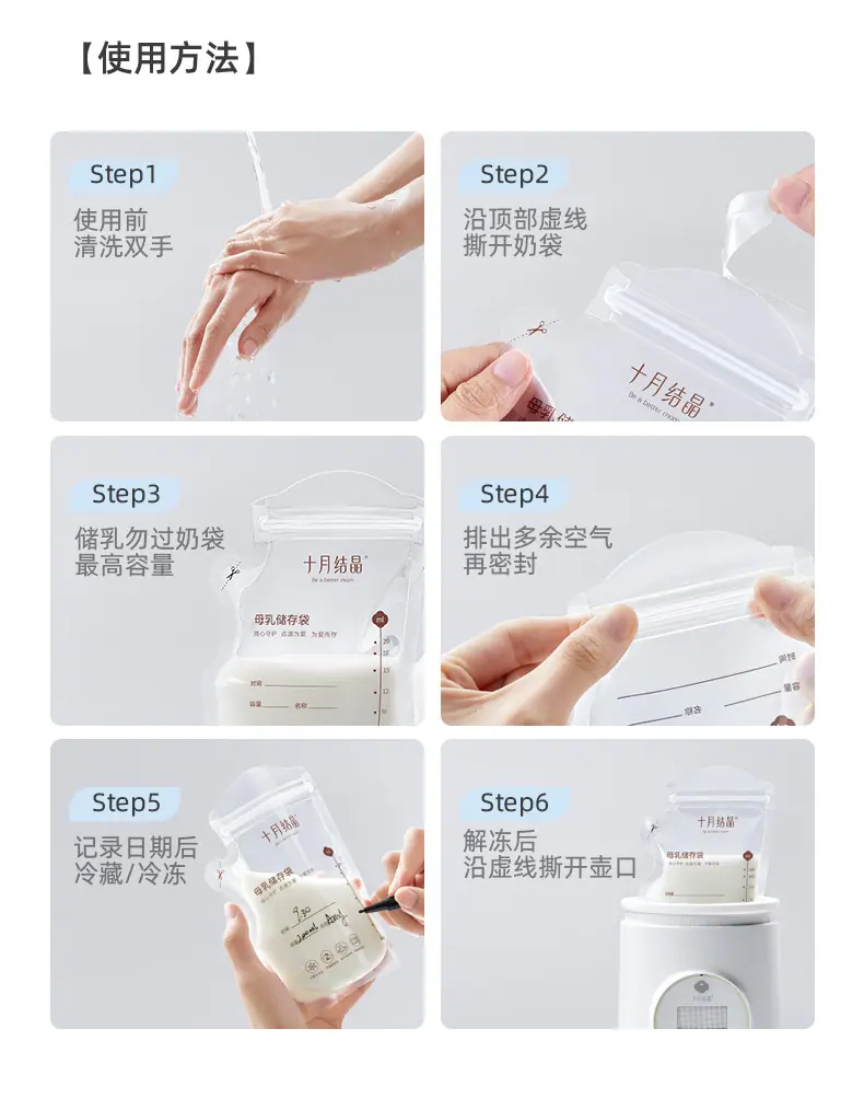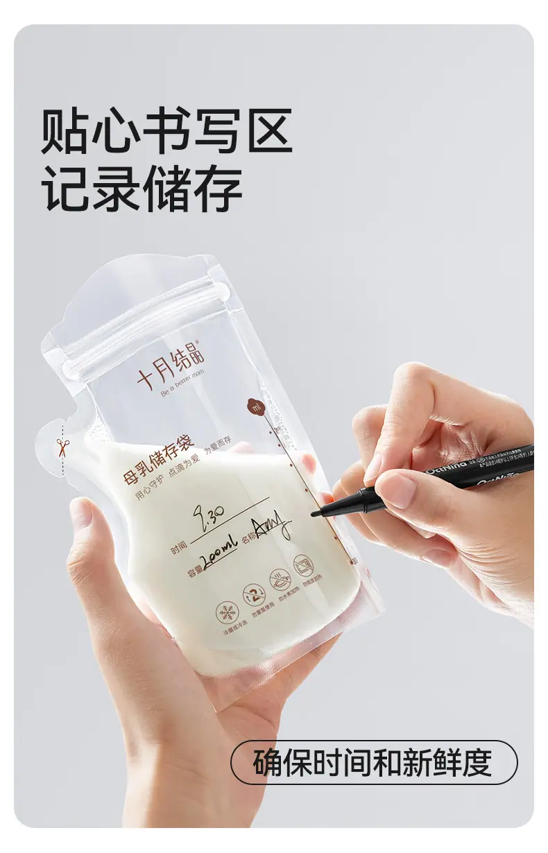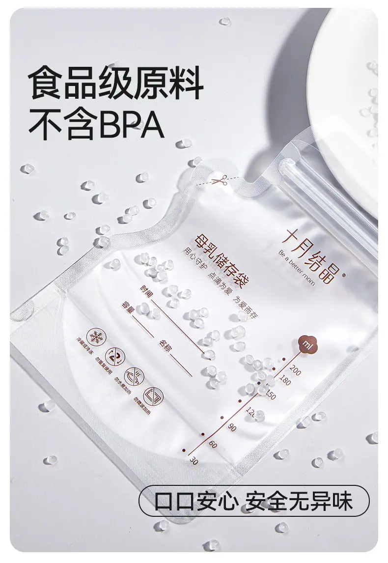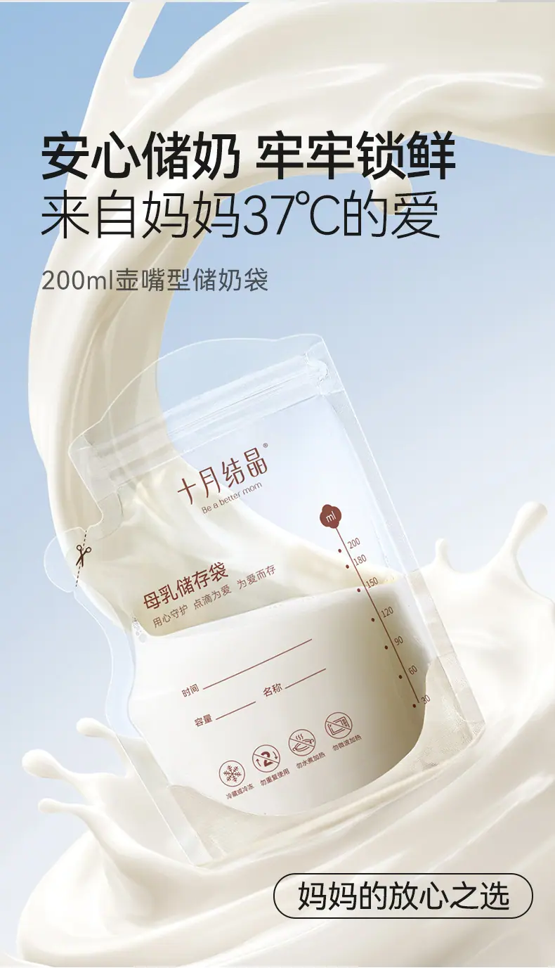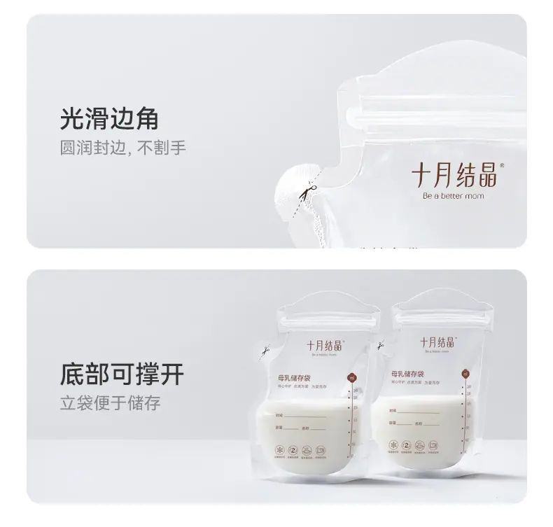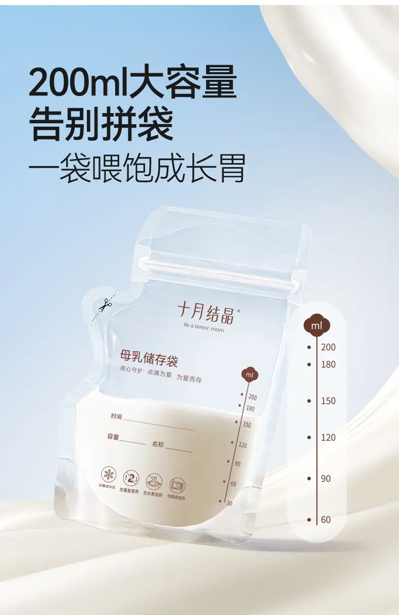 Bolsas de Almacenamiento de Leche Materna Tipo Boquilla de Cristal de Octubre, Bolsas para Almacenar Leche Materna, Bolsas Selladas para Conservar Frescura para Almacenamiento Refrigerado de Leche 200ml Sh5112