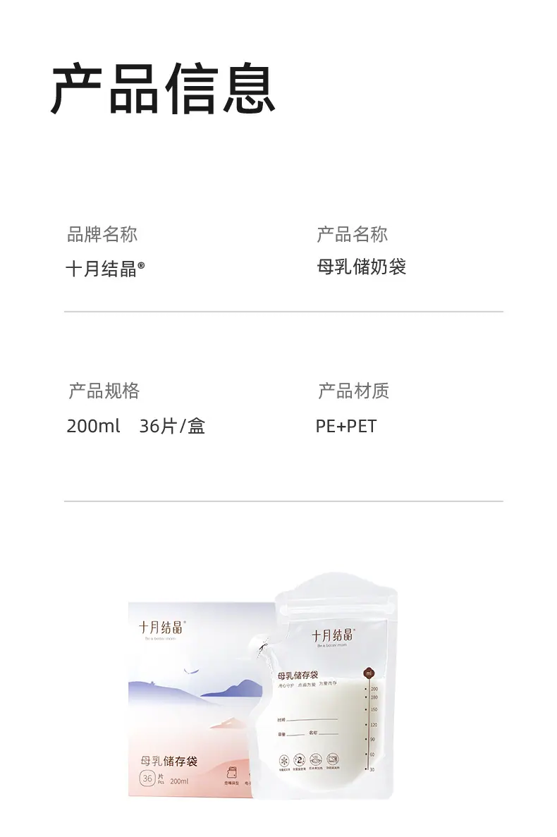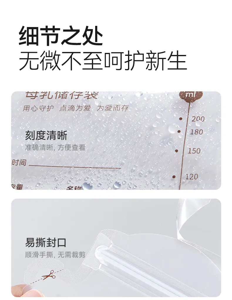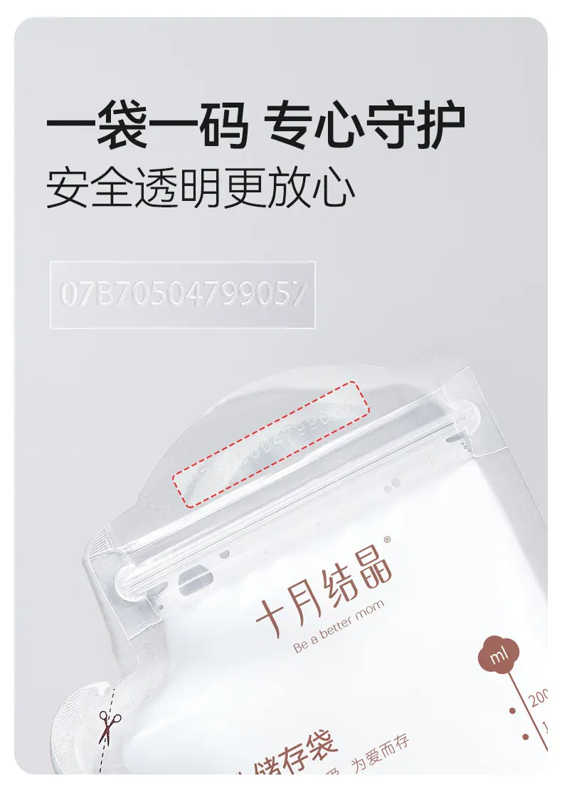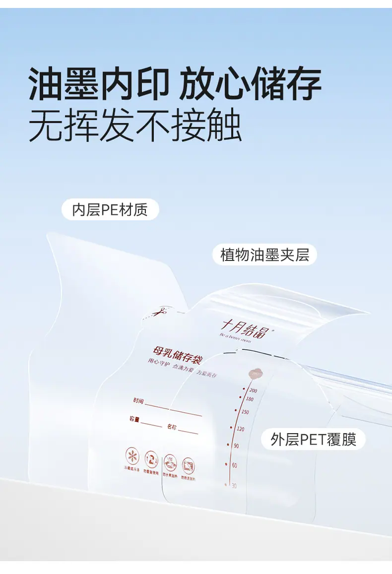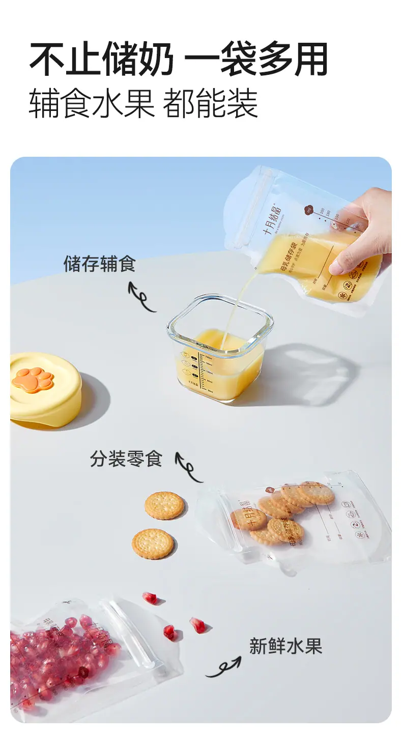 Bolsas de Almacenamiento de Leche Materna Tipo Boquilla de Cristal de Octubre, Bolsas para Almacenar Leche Materna, Bolsas Selladas para Conservar Frescura para Almacenamiento Refrigerado de Leche 200ml Sh5112