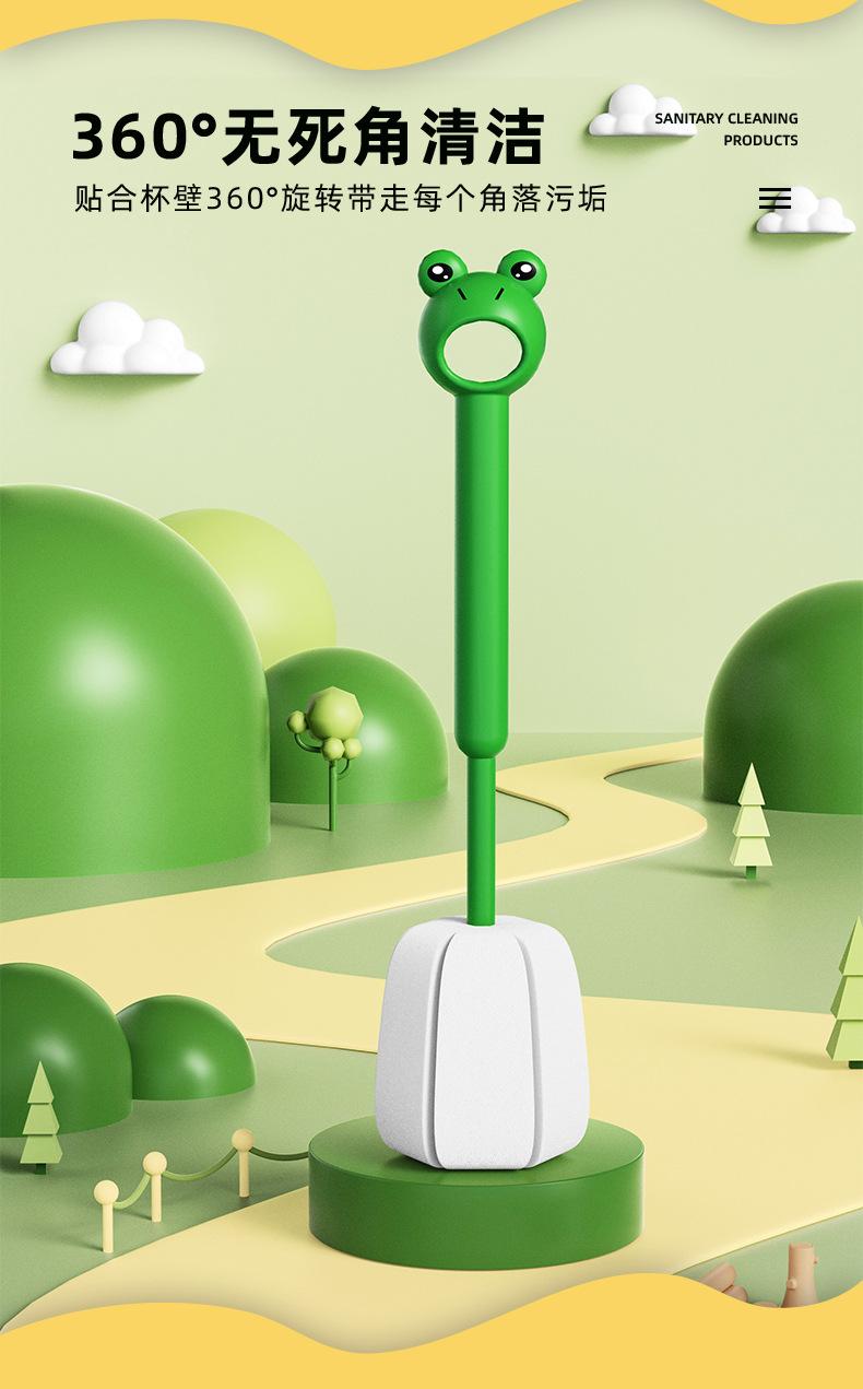 Cepillo para Taza Doméstico de Dibujos Animados con Mango Largo Cepillo para Lavar Tazas Cepillo de Limpieza Sin Ángulos Muertos Cepillo de Esponja Cepillo para Biberón
