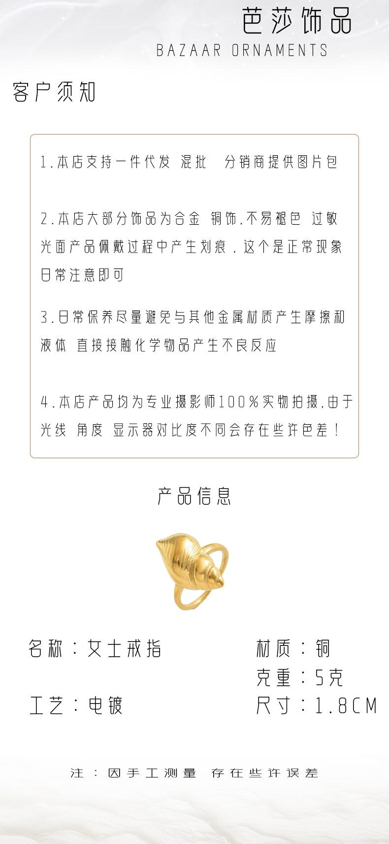 Anillo de mujer europeo y americano de gran venta transfronteriza con diseño de caracola de estilo oceánico personalizado, anillo de dedo que combina con todo.