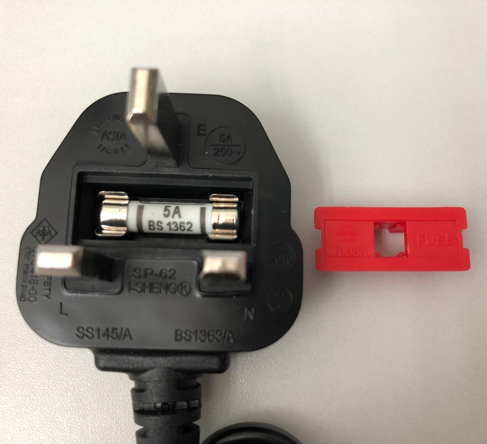 3. Original: cubierta de fusible roja estándar con una pequeña ventana en el medio para exponer el fusible de 5A;