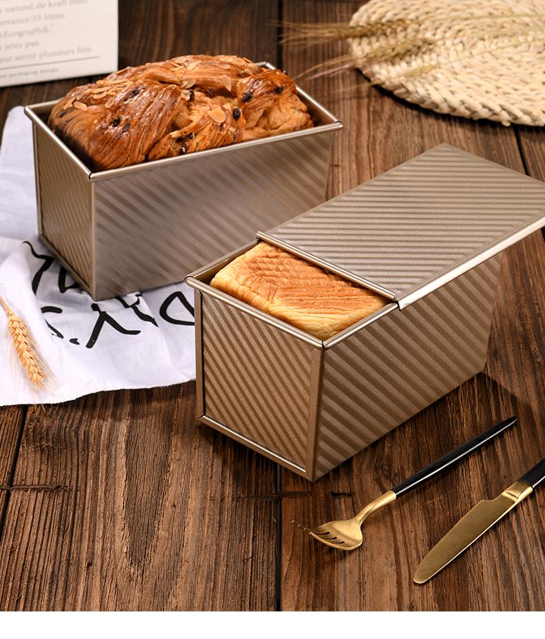 450g (silver outside and gold inside) toast mold with sliding lid✦, 450g golden toast mold without lid✦, 450g ...