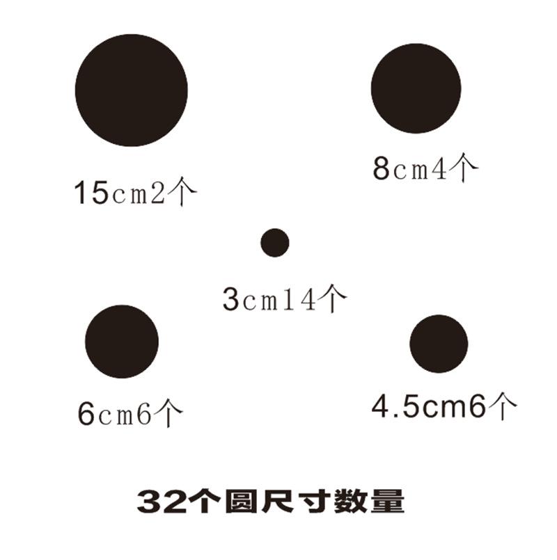 15cm36 círculos, peso alrededor de 130 gramos, tamaño del embalaje 15*15*0.7cm, la cantidad es 15cm2, 8cm4, 5.5cm8, 3.5cm4, 2.5cm4, 2.2cm16.