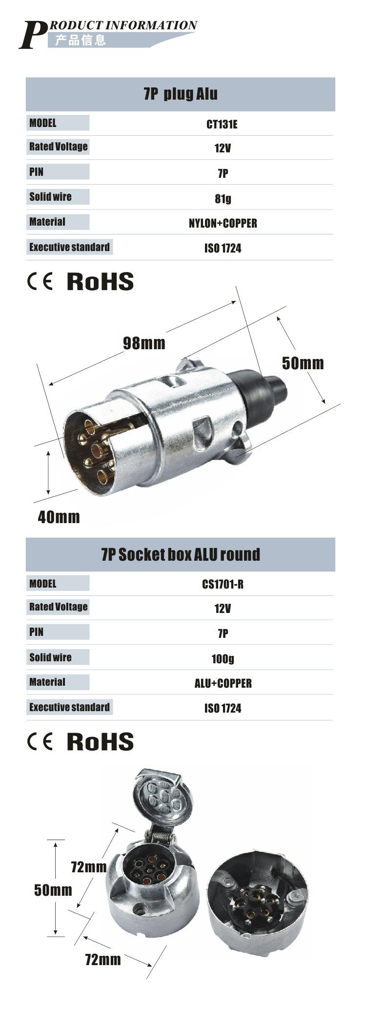 Toma de corriente de 7 núcleos de aleación de aluminio Toma de corriente de remolque de 7 núcleos con base redonda
