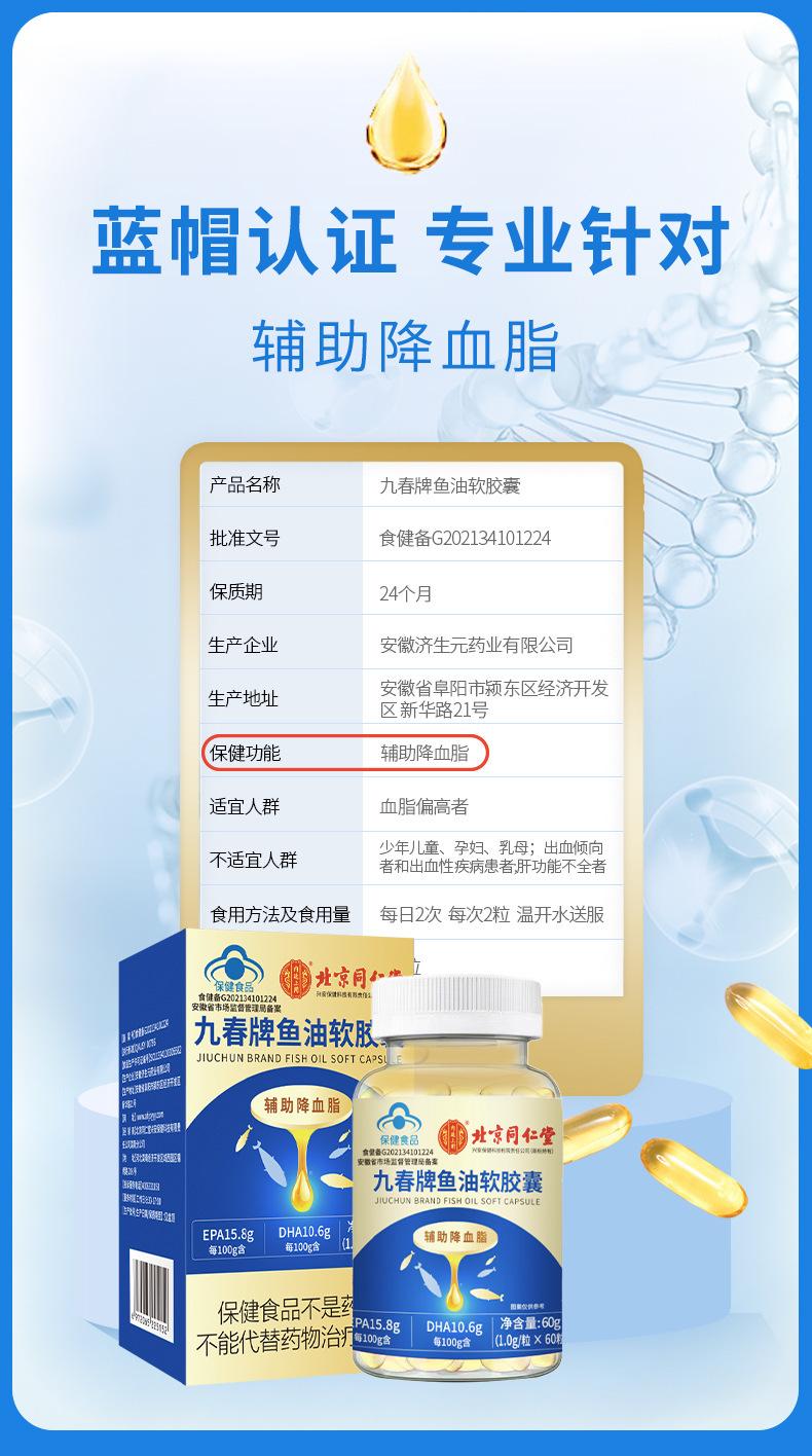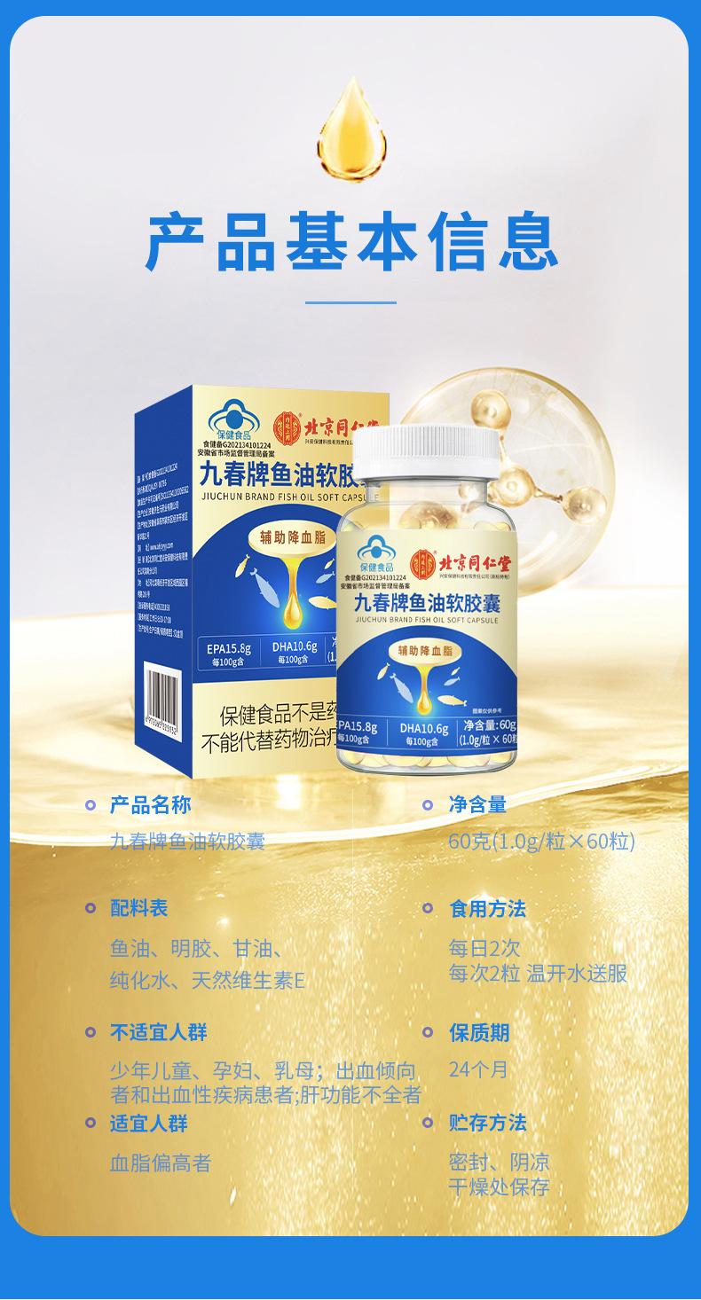 Compra Cápsula Blanda de Aceite de Pescado Marca Beijing Tongrentang Jiuchun Dha Gotas de Aceite de Hígado de Bacalao Envío Directo al por mayor en Joom.pro