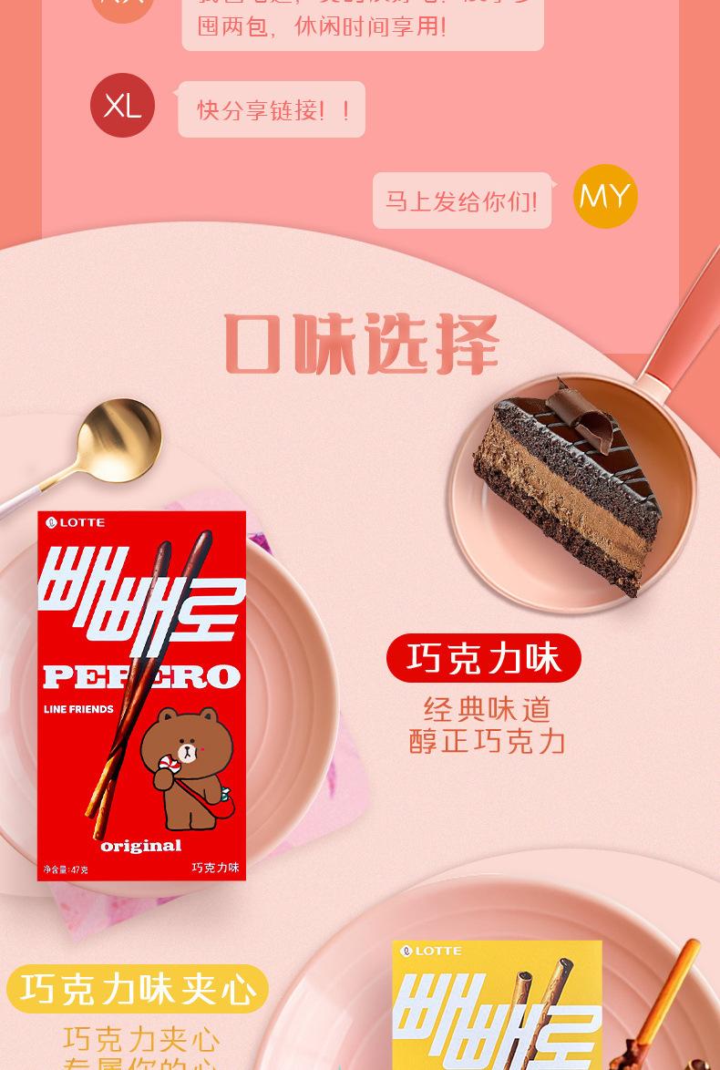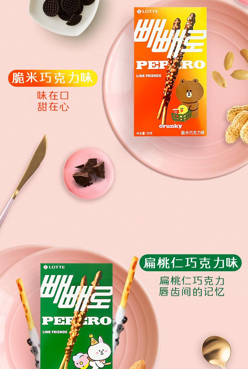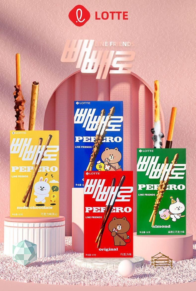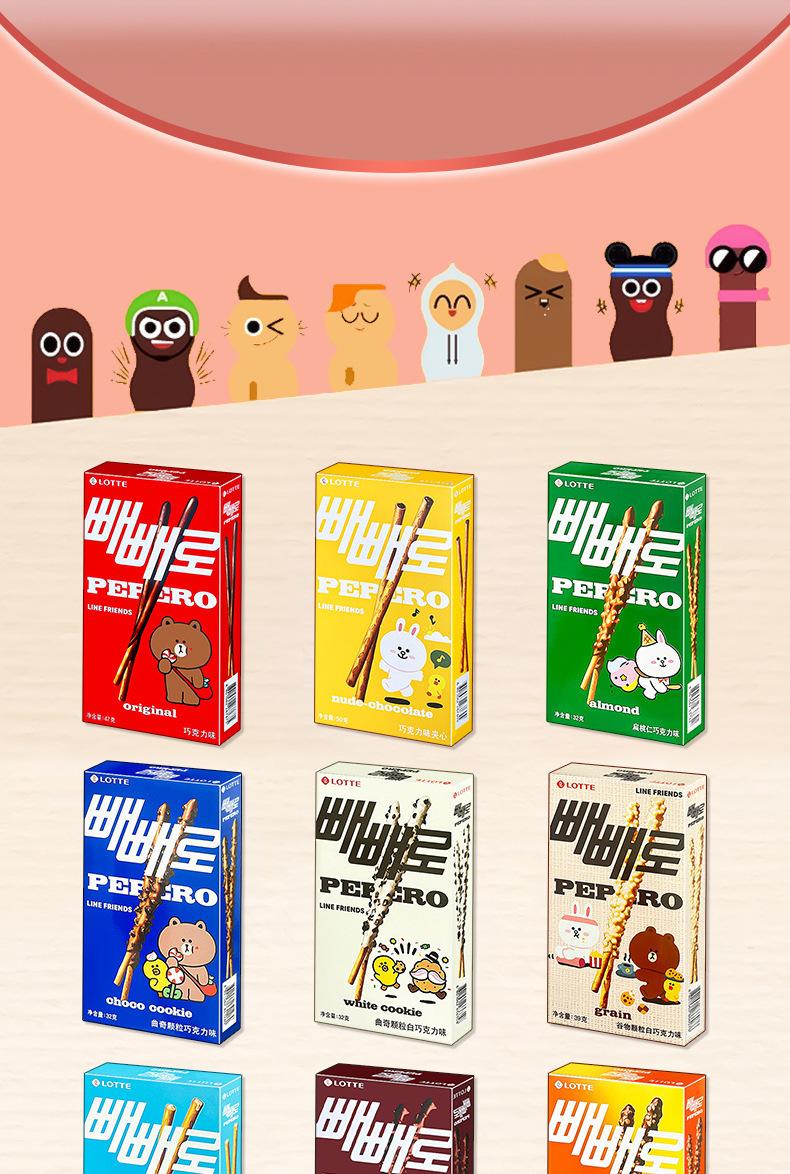 Galletas decorativas tipo sándwich Lotte Pepero Paipai recubiertas de chocolate importadas de Corea del Sur.
