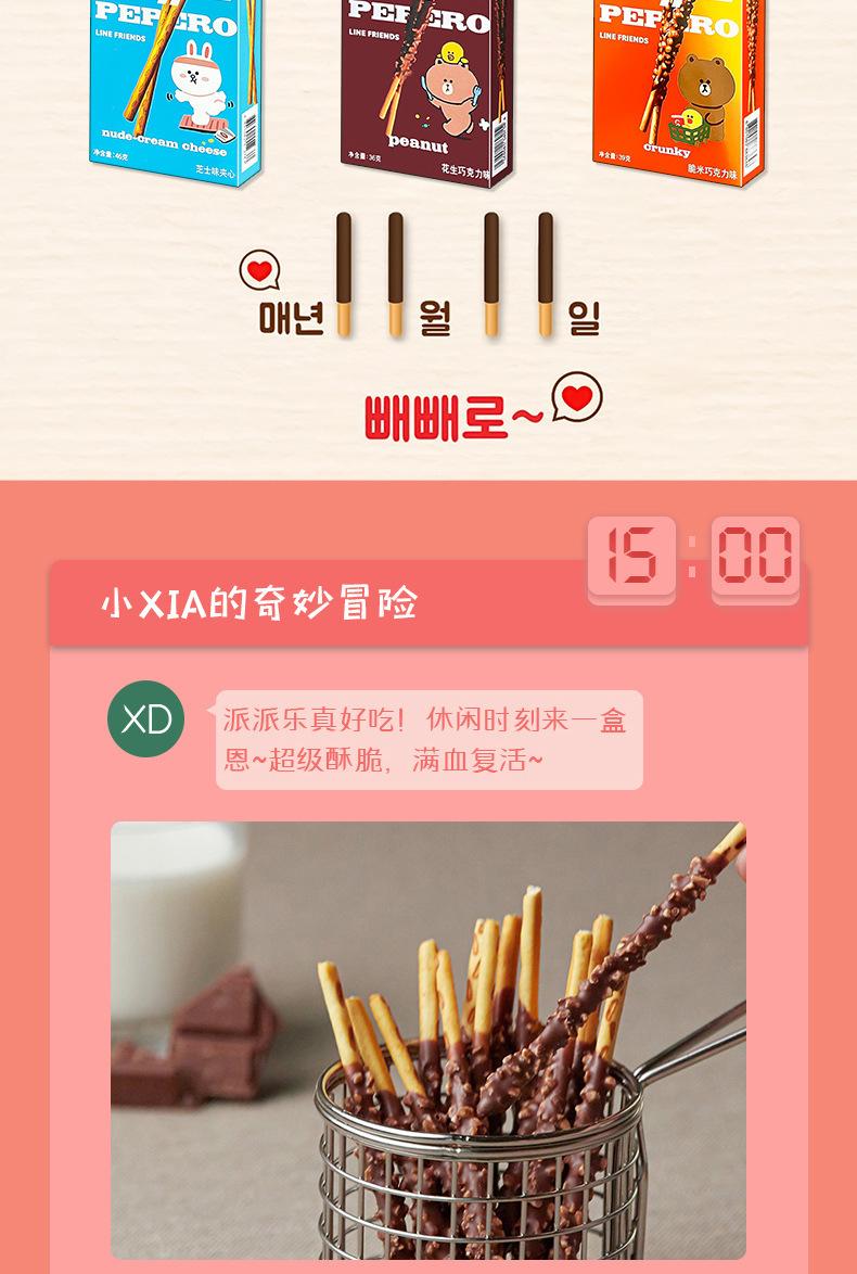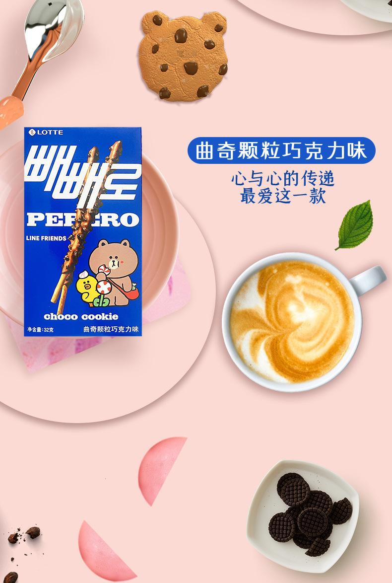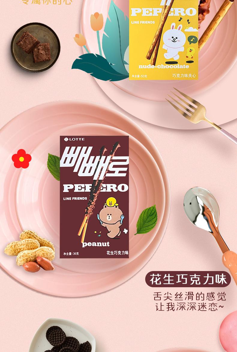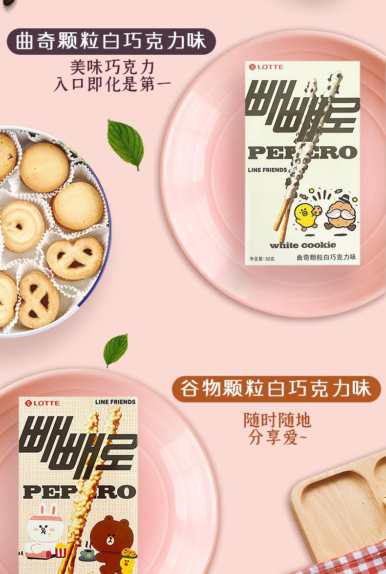 Galletas decorativas tipo sándwich Lotte Pepero Paipai recubiertas de chocolate importadas de Corea del Sur.