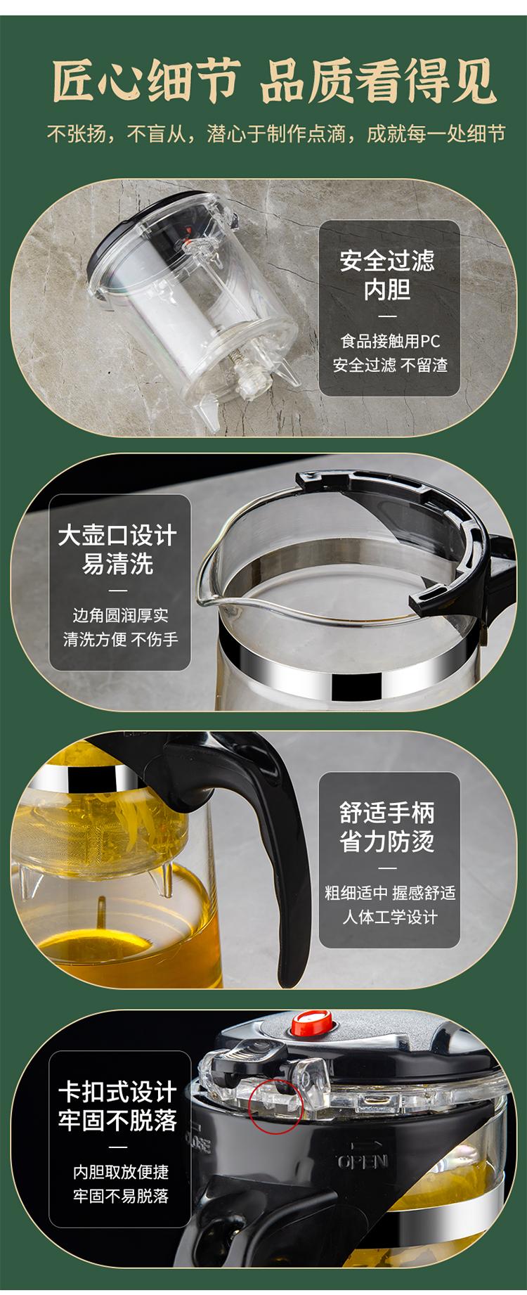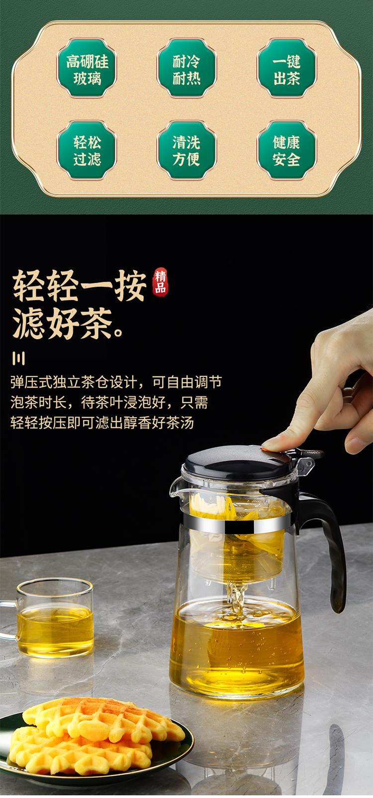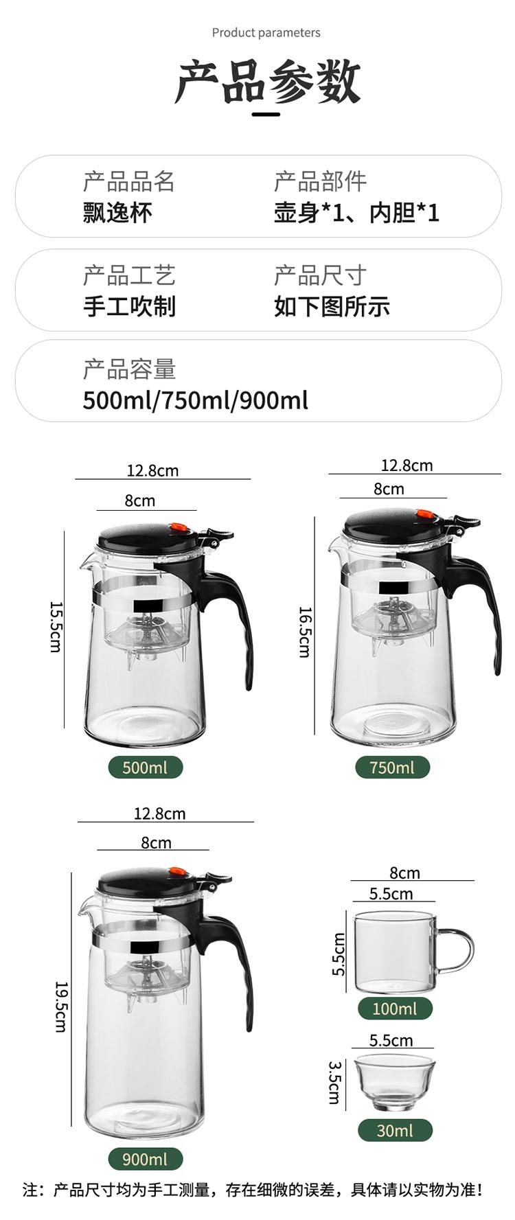 Tetera Taza Elegante Juego de Té Hogar Vaso Resistente a Altas Temperaturas Taza para Preparar Té Filtro de un Clic Separación de Agua y Té Camino Divino