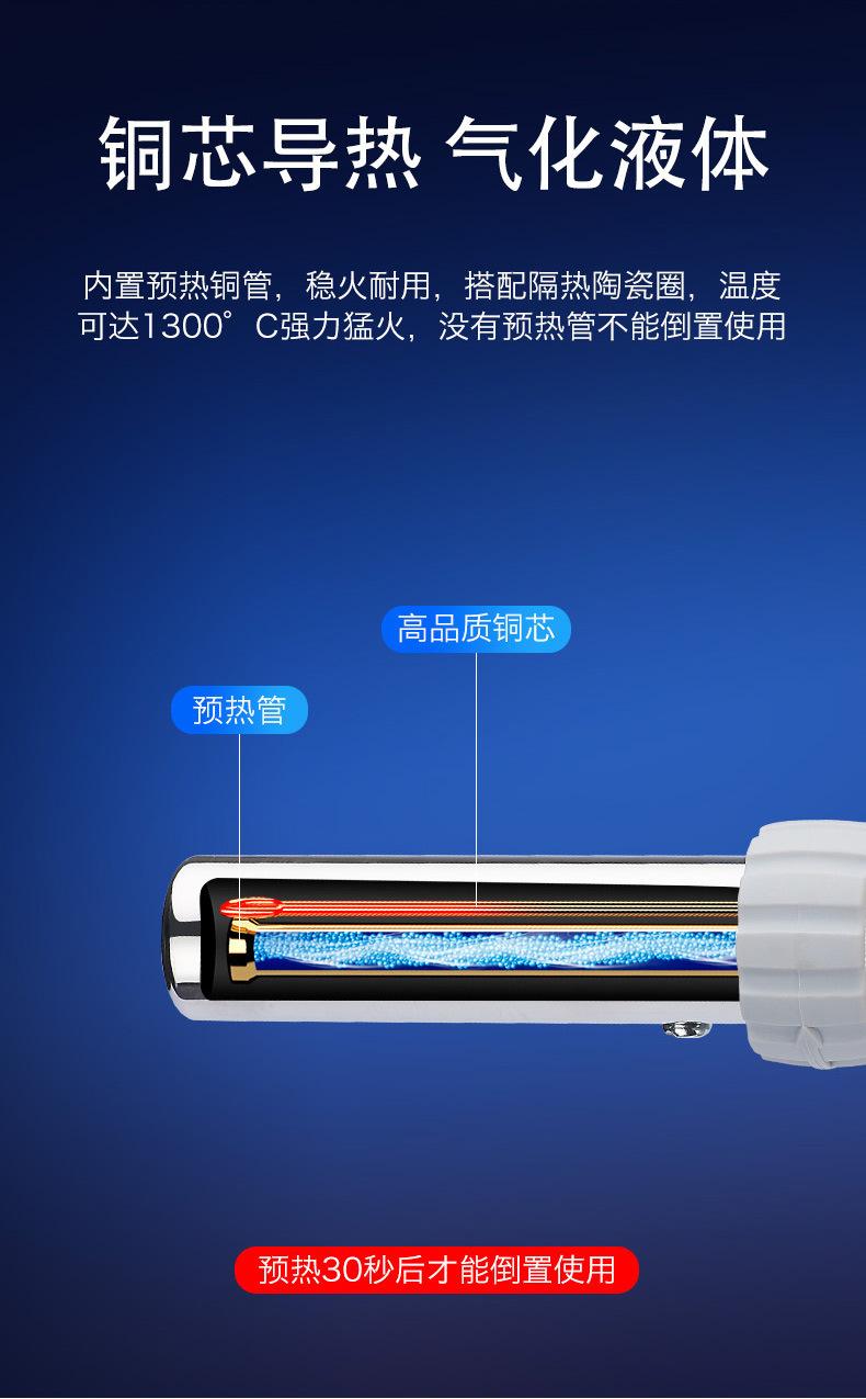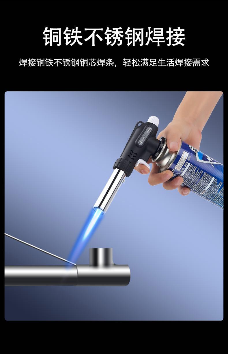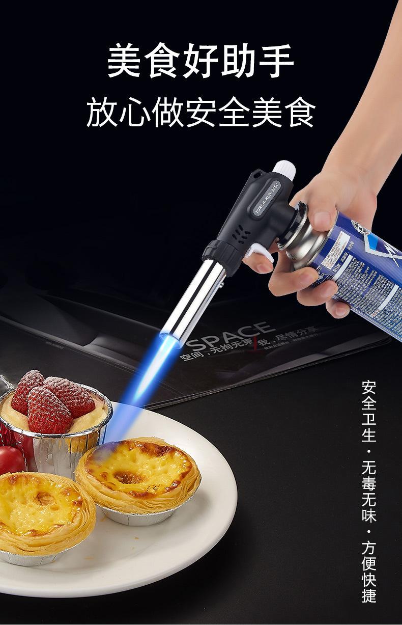Soplete recto grande, tubo de acero inoxidable, tamaño de llama ajustable, la llama puede quemar a 1300 grados c, llama abierta ajustable, se puede usar boca abajo y se puede usar 360 grados c.