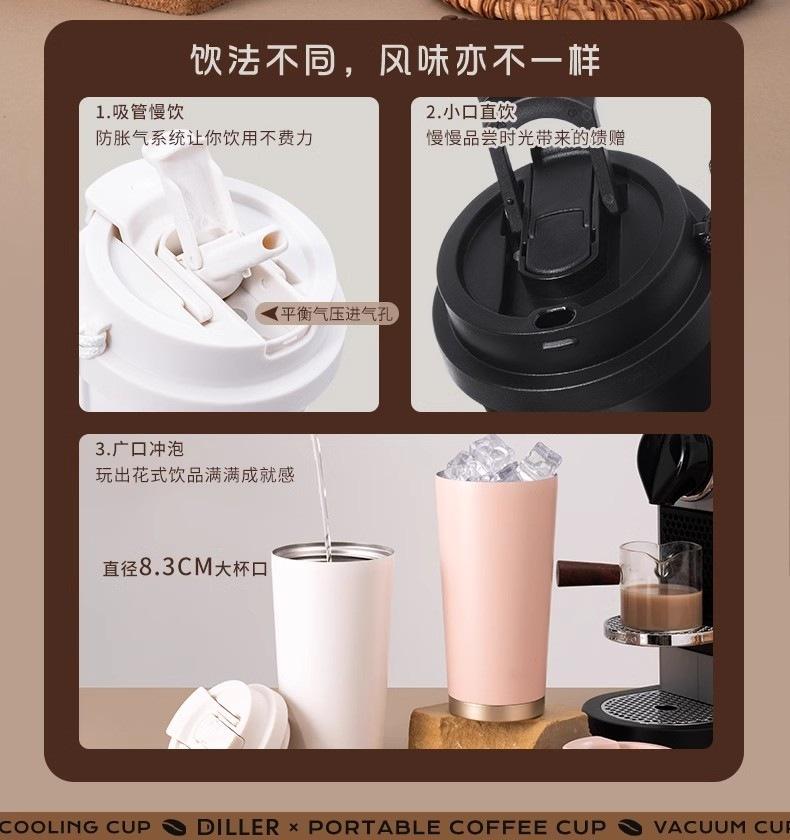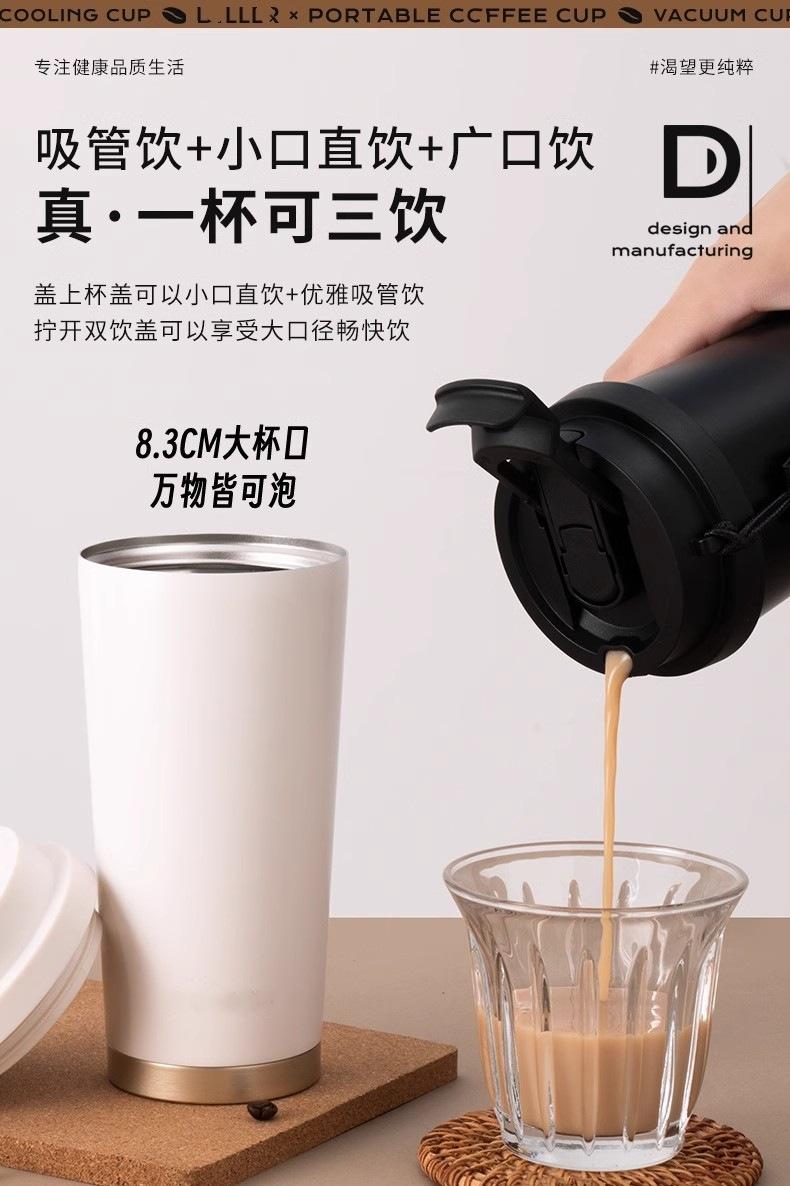 Taza de café con pajita, termo de acero inoxidable 316, gran capacidad, bonita, sencilla, portátil, para estudiantes, para oficina
