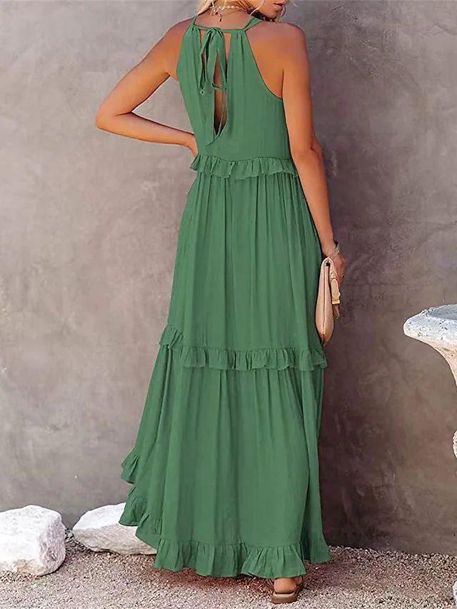Vestido Largo con Volantes Estilo Resort de Verano Europeo y Americano 2023 Amazon Swing Elegante Vestido de Playa para Mujer Forrado