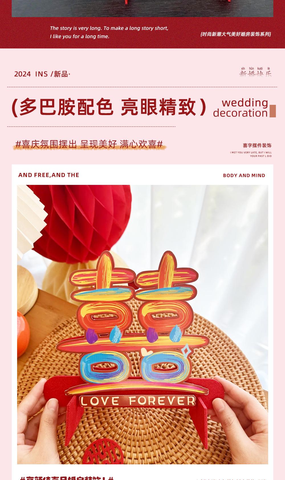 Adornos de boda de color tridimensionales, decoración de escritorio para sala de estar, dormitorio, mesa, diseño de sala de bodas, suministros festivos