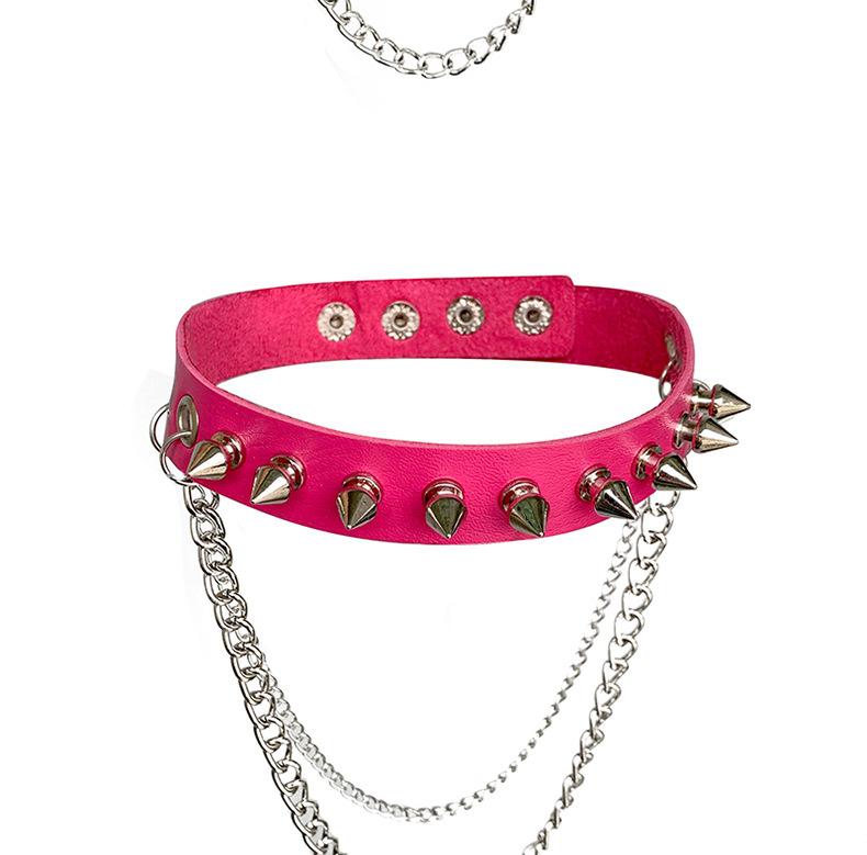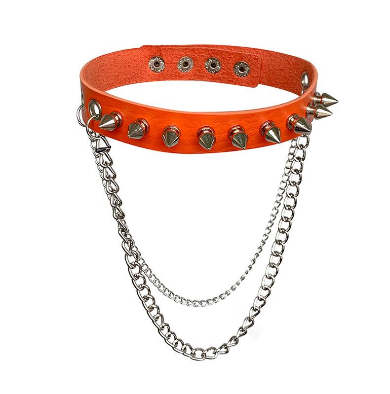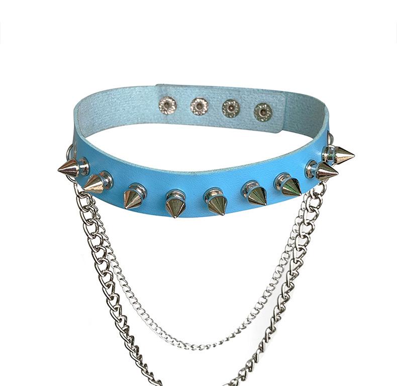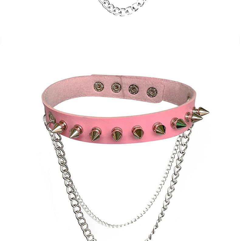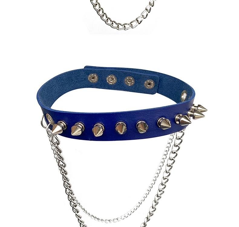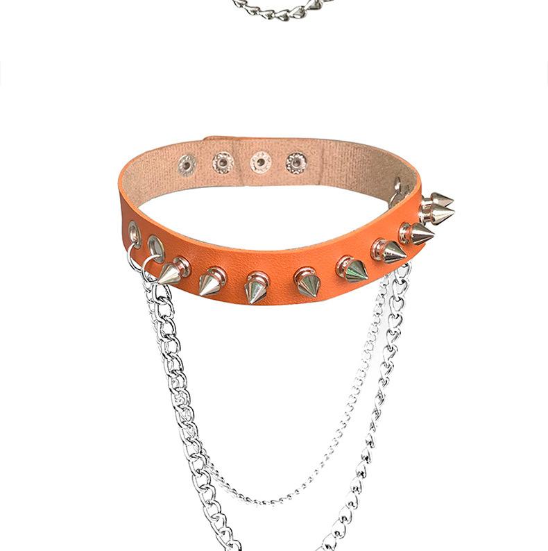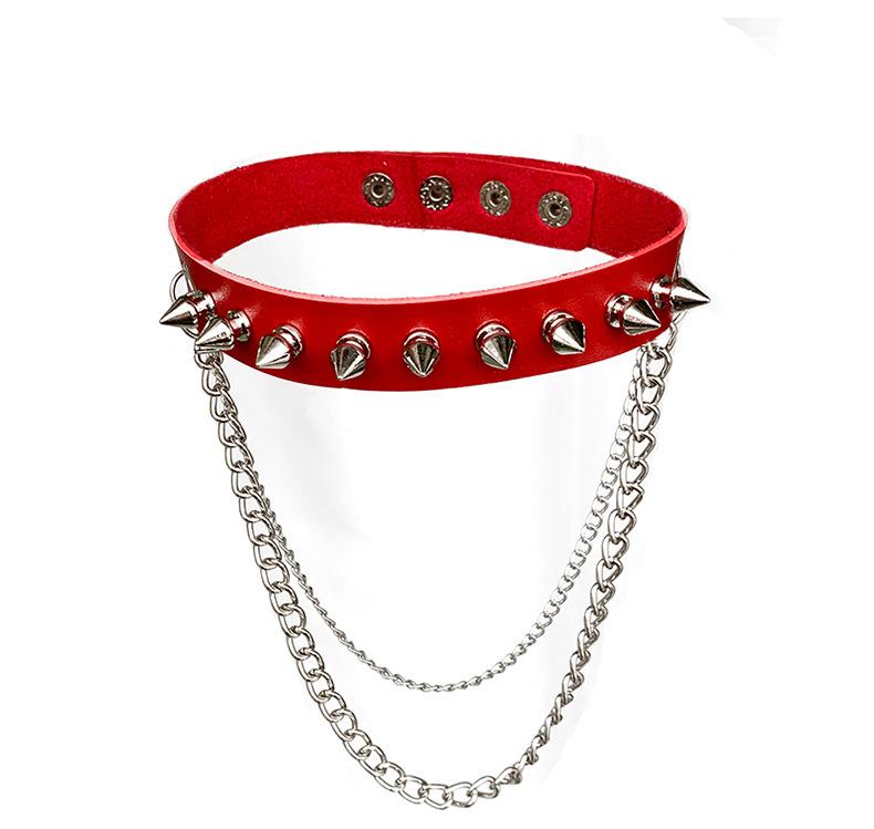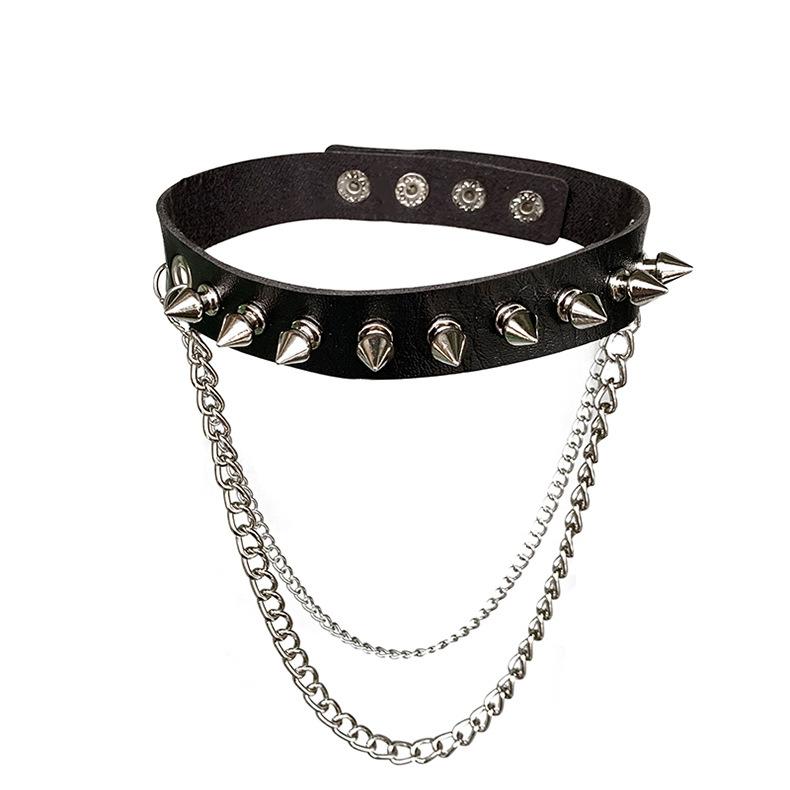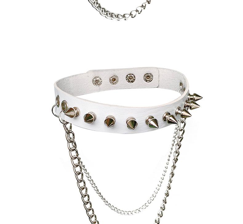 Collar con remaches de pinchos estilo gótico punk Harajuku europeo y americano, collar de cuero hecho a mano, cadena para clavícula.