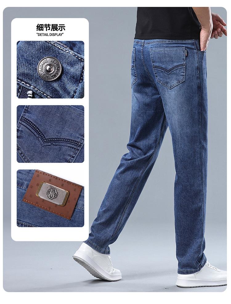 Pantalones vaqueros nuevos y delgados de verano 2024 para hombre, rectos, sueltos, de mediana edad, para negocios, elásticos, casuales, al por mayor