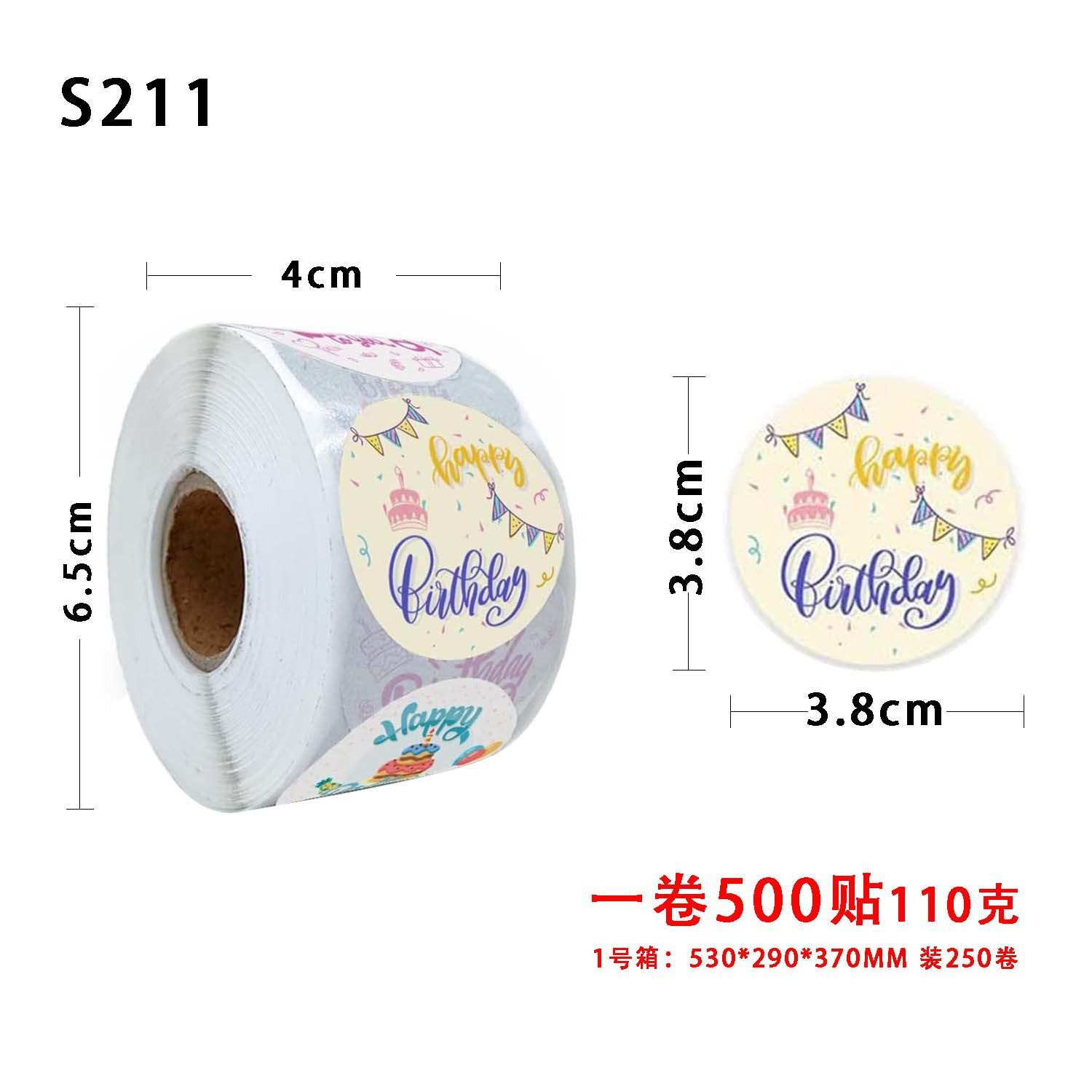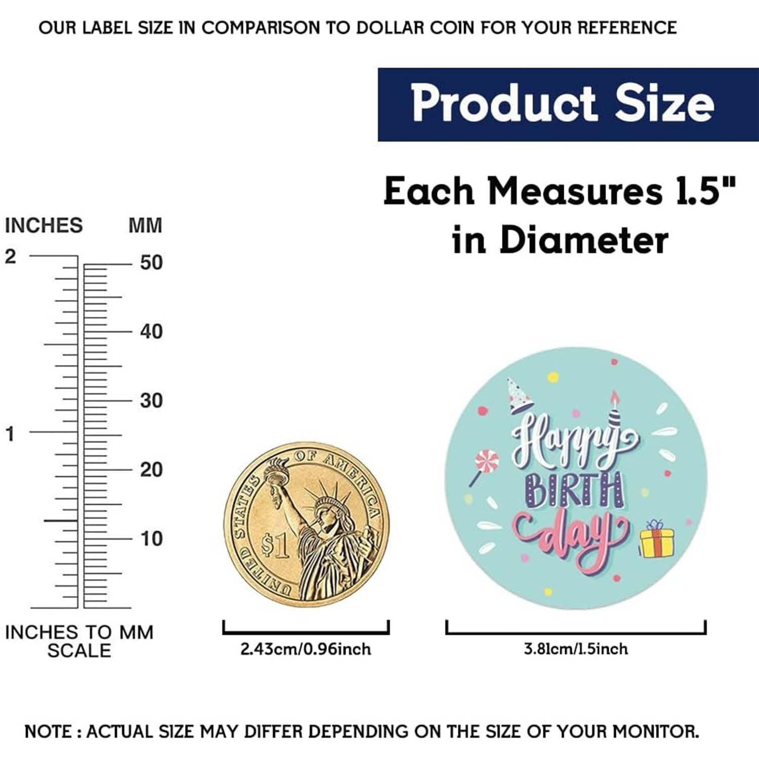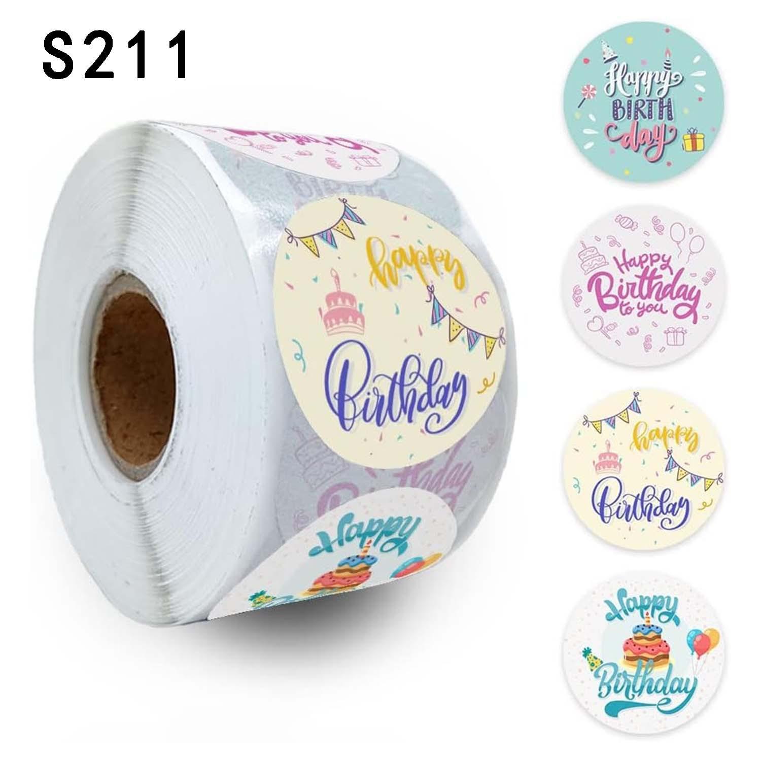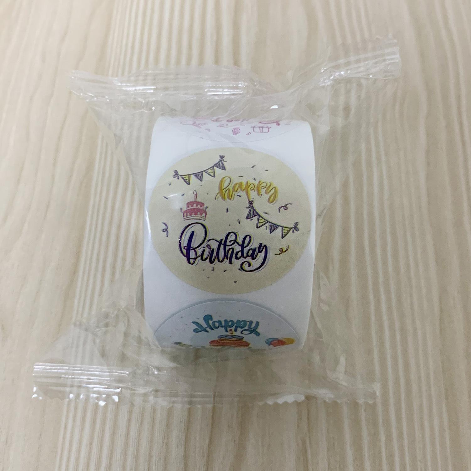 Rollo de 500 pegatinas adhesivas de 3,8 cm con texto "Feliz cumpleaños", para oficina, papelería, decorativas, de sellado