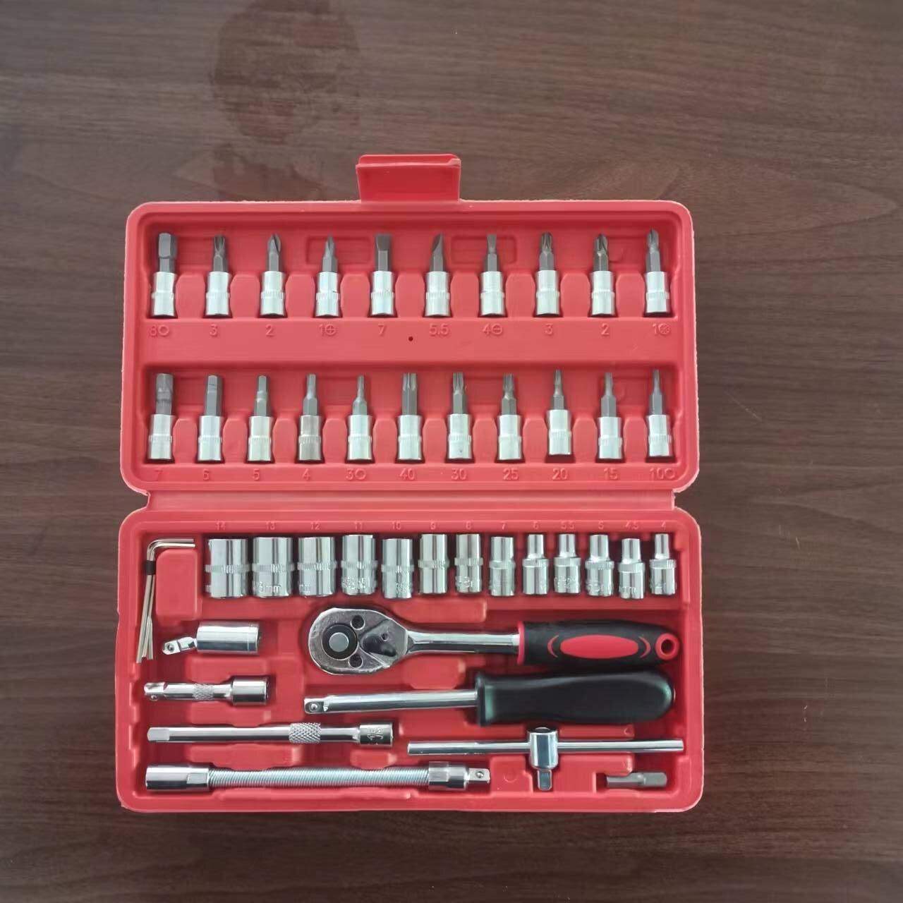 Juego de 46 herramientas combinadas para reparación de automóviles, llave de tubo pequeña, llave de trinquete de 1/4, caja de herramientas para reparación de máquinas