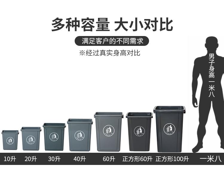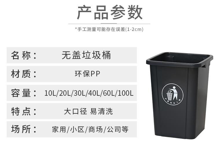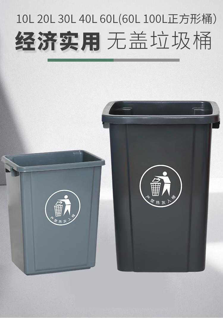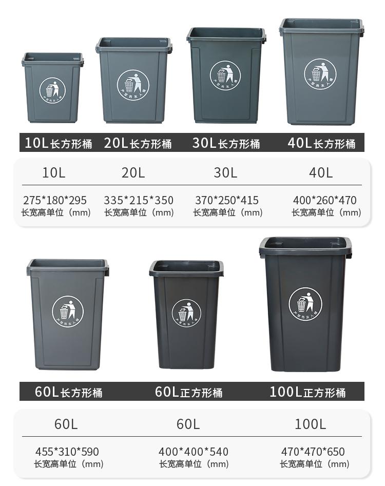 Cubo de basura sin tapa para cocina, hogar, gran capacidad, comedor, comercial, exterior, sala de estar, cesta de papel rectangular, tamaño grande, pequeño, 40L