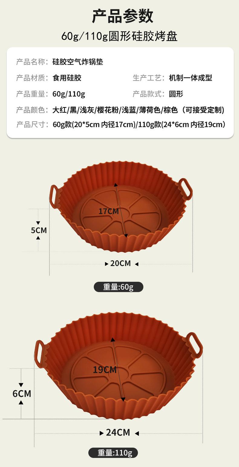 Molde redondo para hornear de 110g: 24*19*6cm Molde cuadrado para hornear de 55g 21*18*5cm.