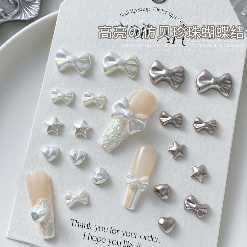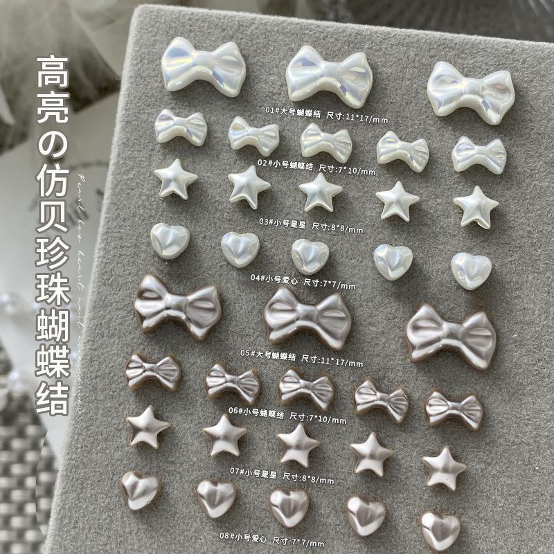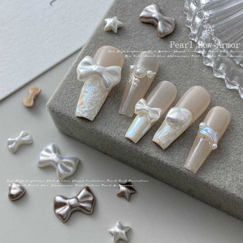 Belleza de uñas resaltada con imitación de perla, lazo de amor, joyería de uñas, textura tridimensional, color mágico, accesorios de diamante para uñas planas