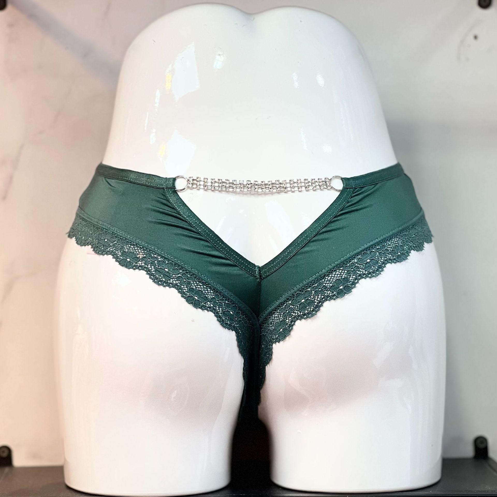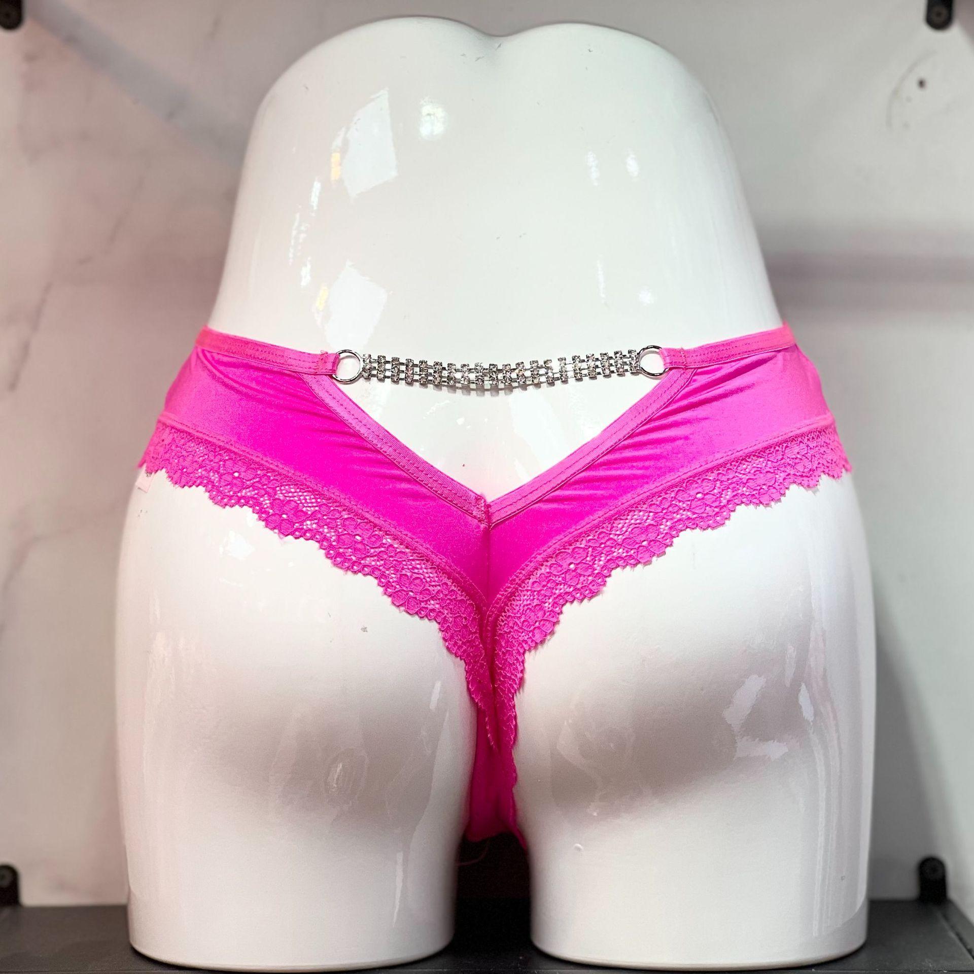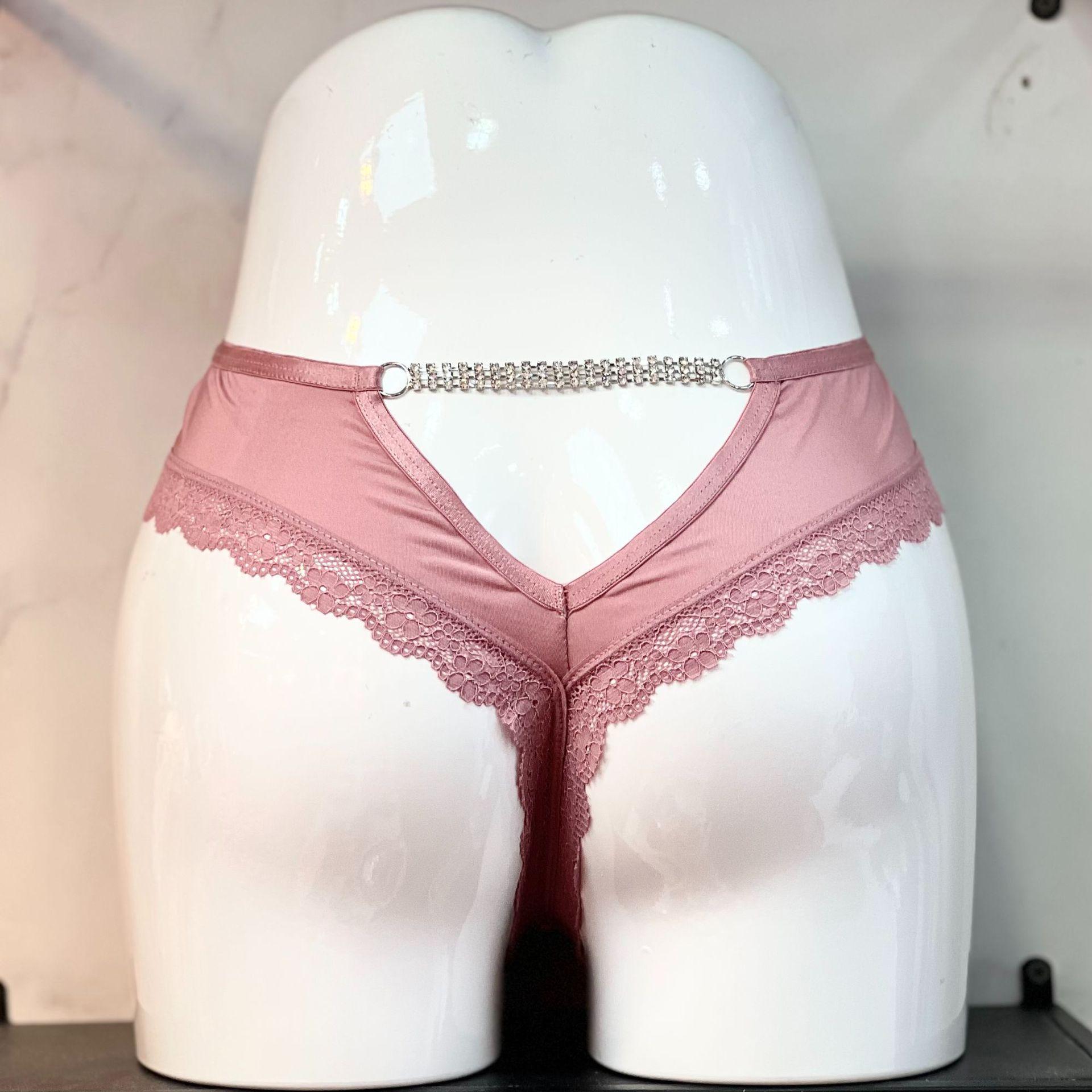 Tanga de encaje con cadena de diamantes para mujer, cómoda, de seda helada, de algodón, con entrepierna, sexy, de cintura baja