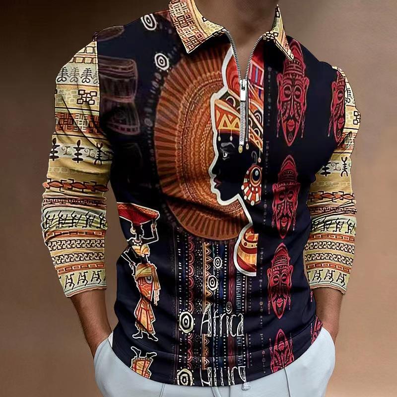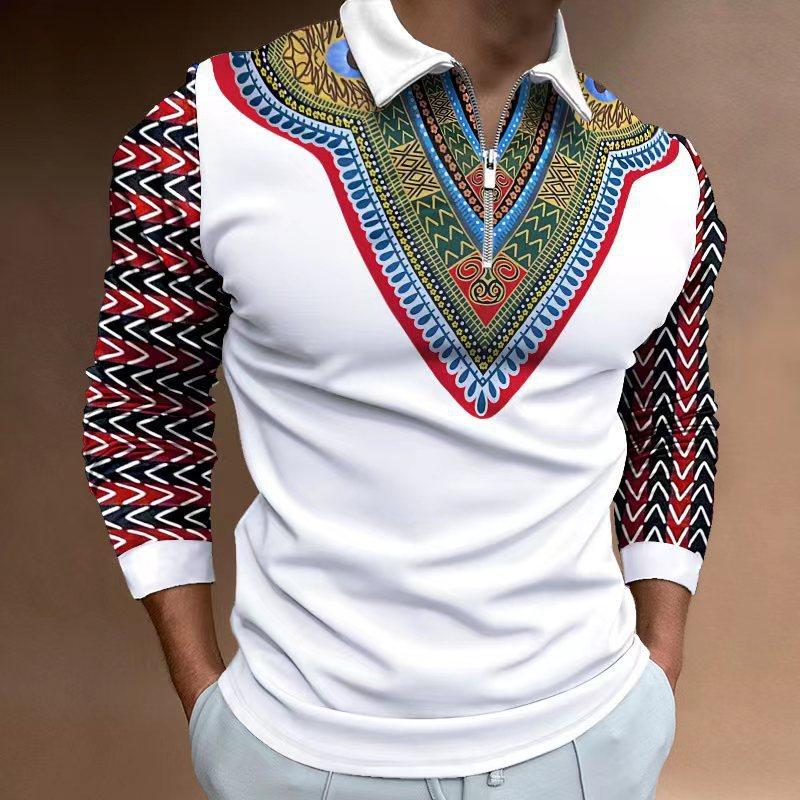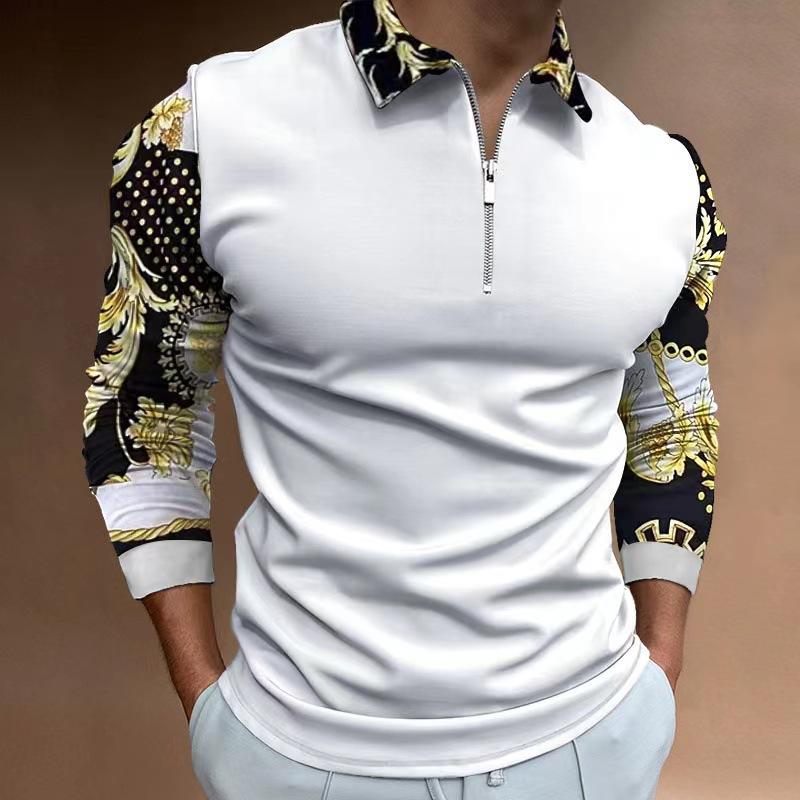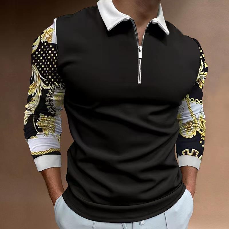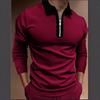 Polo informal de manga larga para hombre, nuevo, de Amazon, con cremallera en contraste y holgado, disponible en el mercado transfronterizo.
