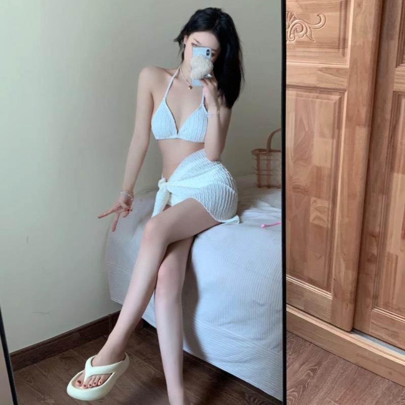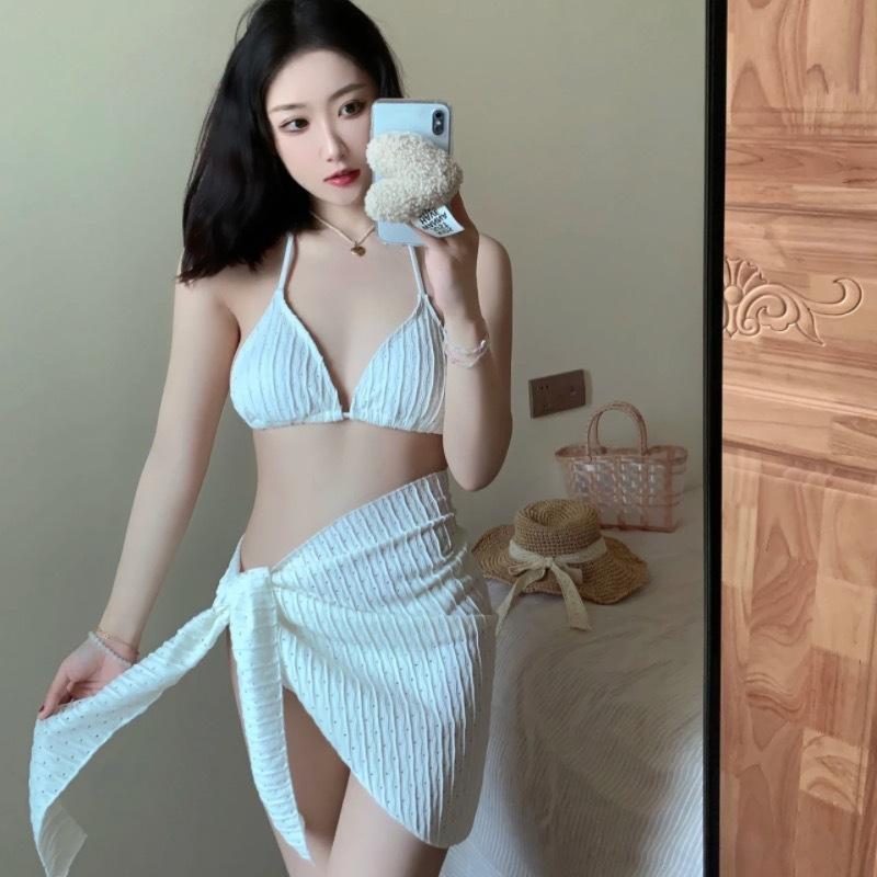 Traje de baño de bikini sexy para mujer, conjunto de tres piezas dividido, traje de baño de verano para vacaciones en la playa, aguas termales para mujer