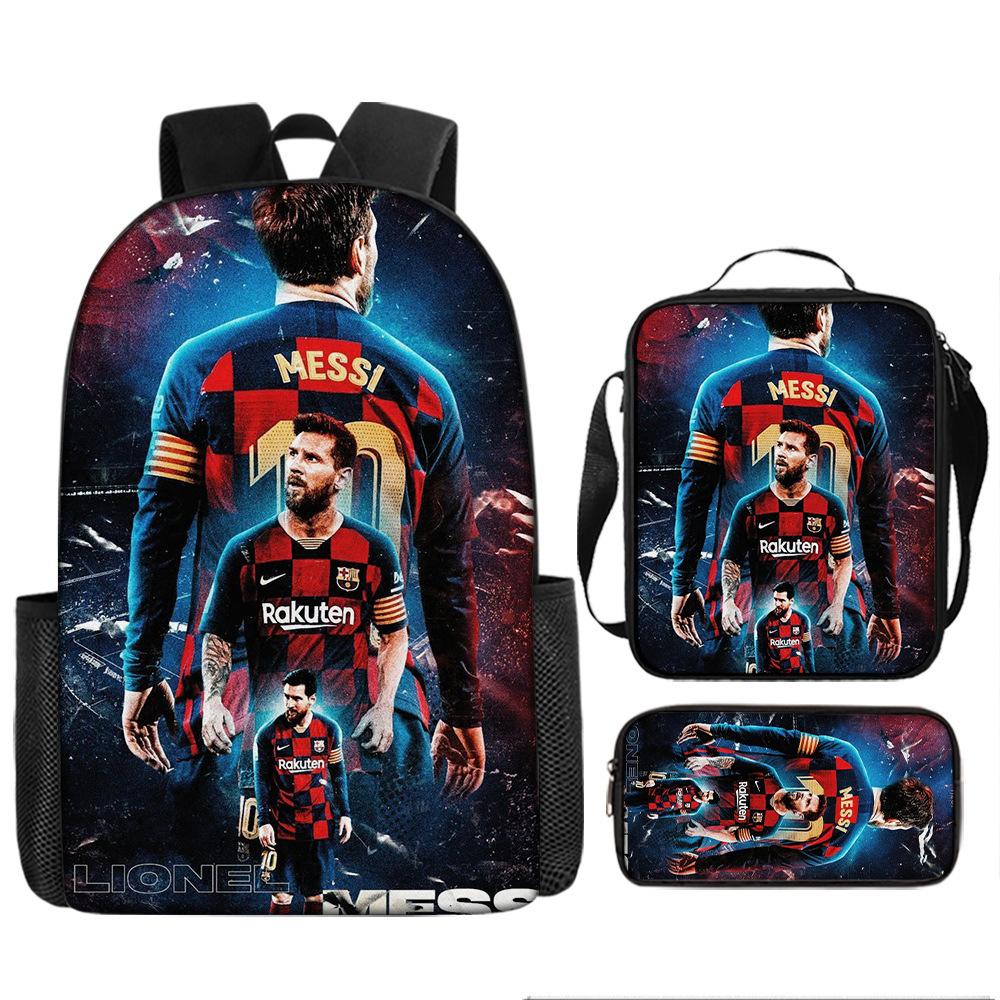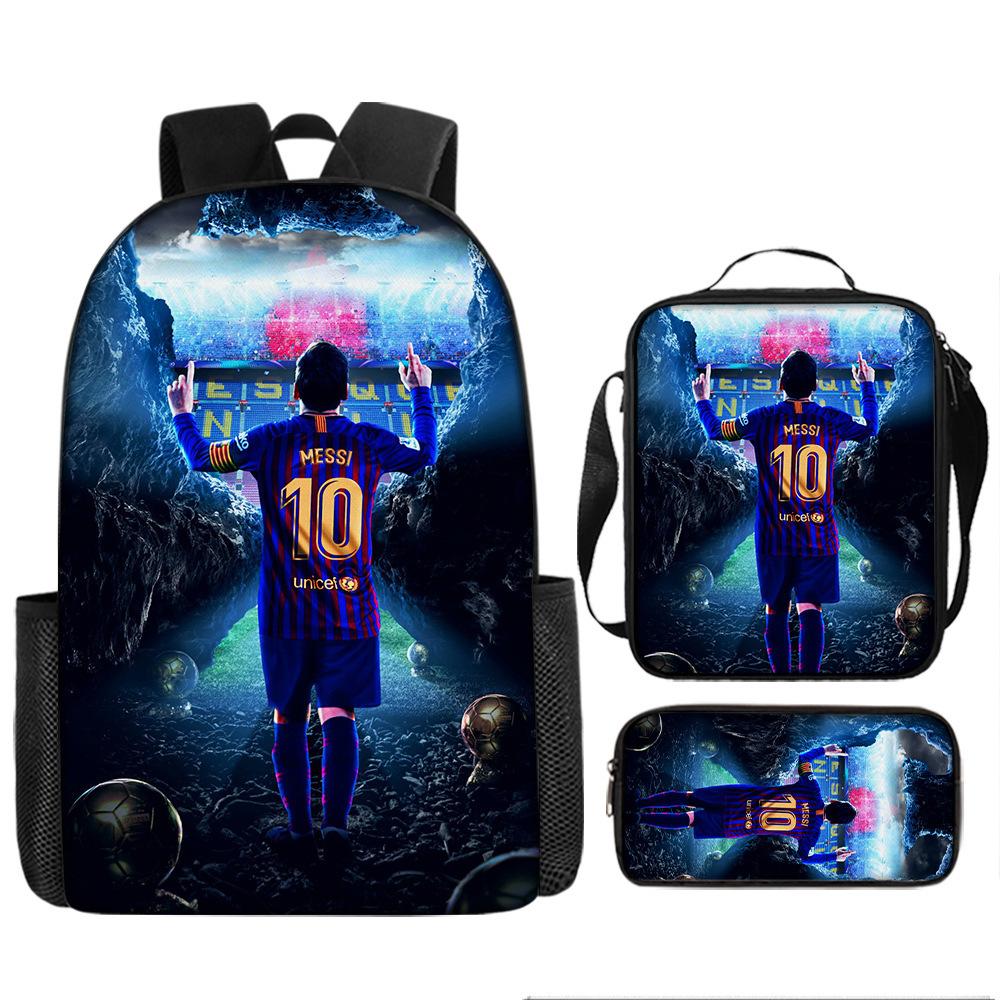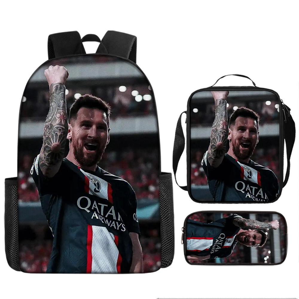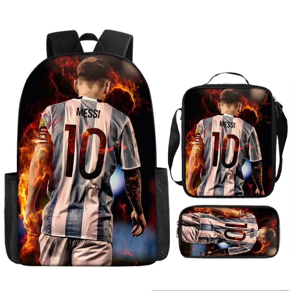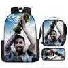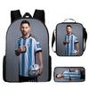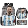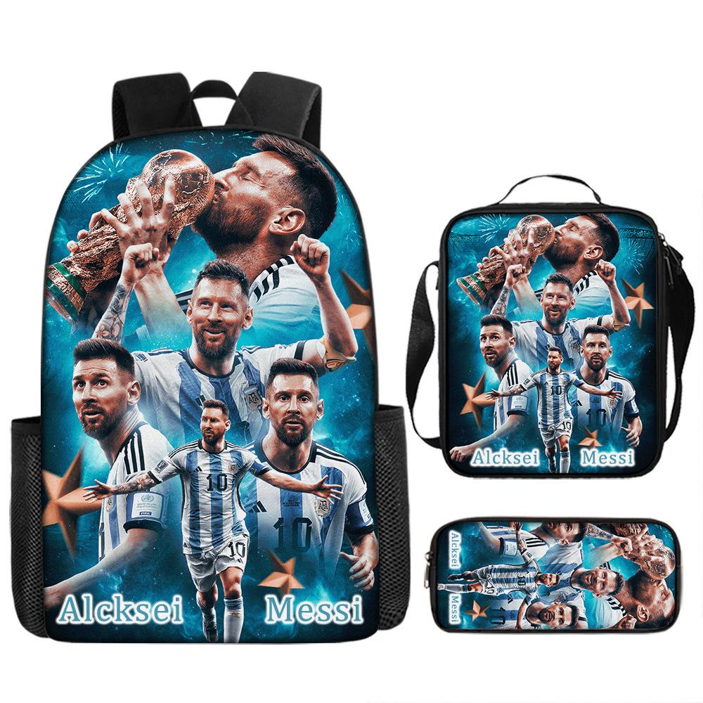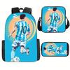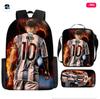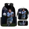 Mochila periférica de la estrella de fútbol Massey, impresión de tres piezas, mochila escolar para niños, mochila para estudiantes de primaria, lonchera, estuche