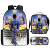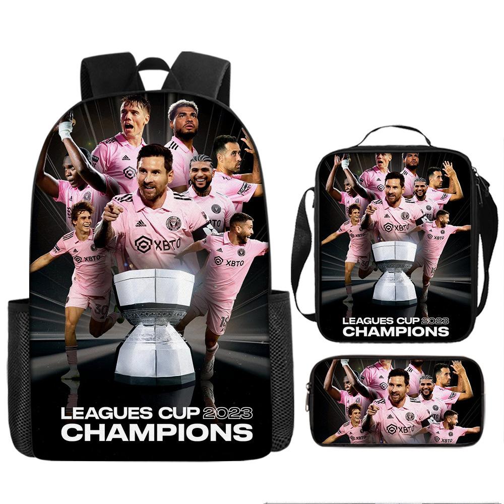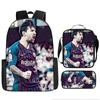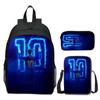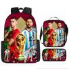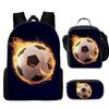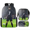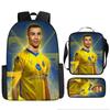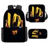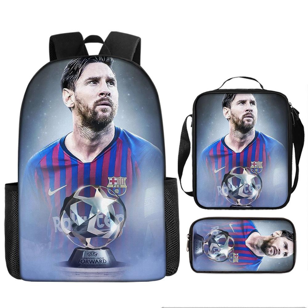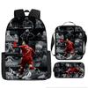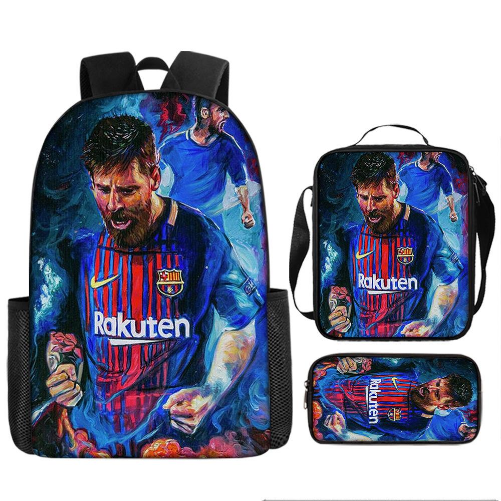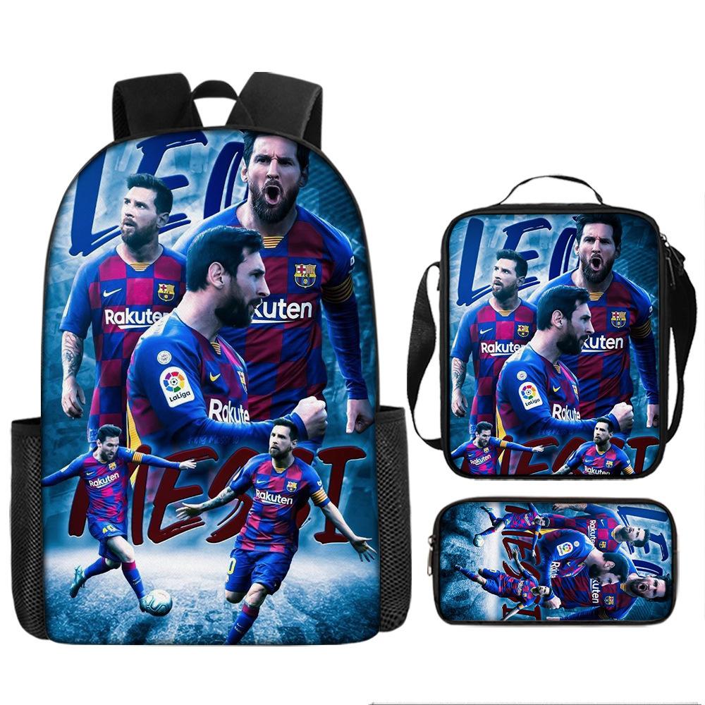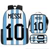 Mochila periférica de la estrella de fútbol Massey, impresión de tres piezas, mochila escolar para niños, mochila para estudiantes de primaria, lonchera, estuche