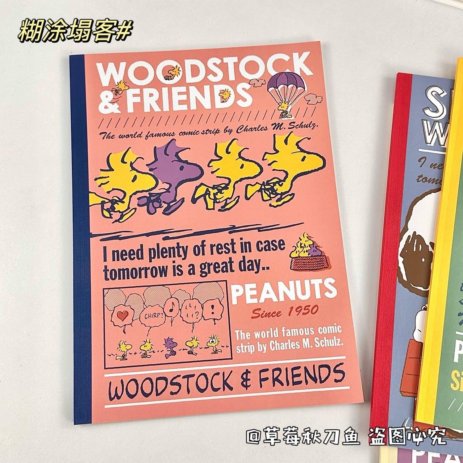 Cuaderno pequeño rojo del mismo estilo de la serie Snoopy b5, bloc de notas japonés con forma de corazón de niña linda, cuaderno de líneas horizontales engrosado