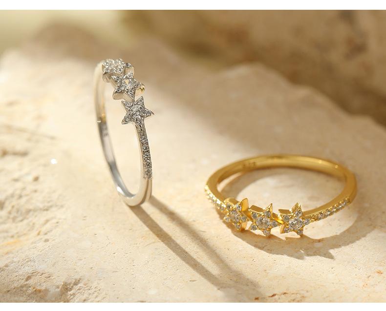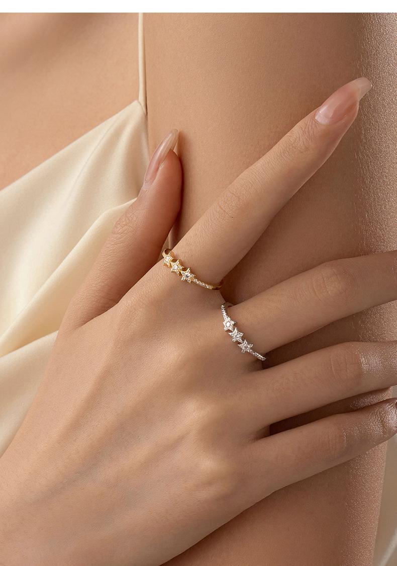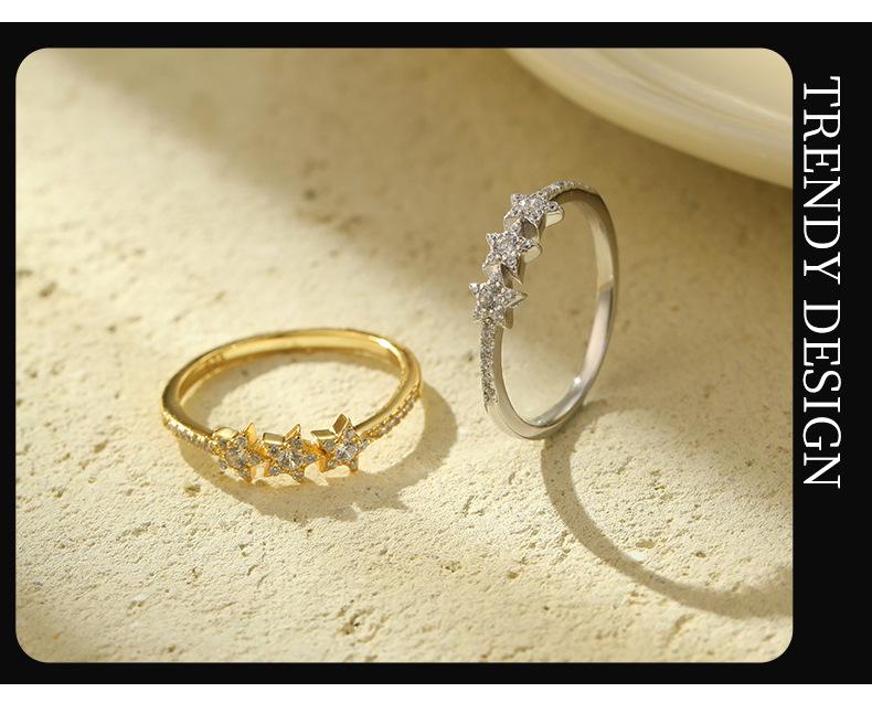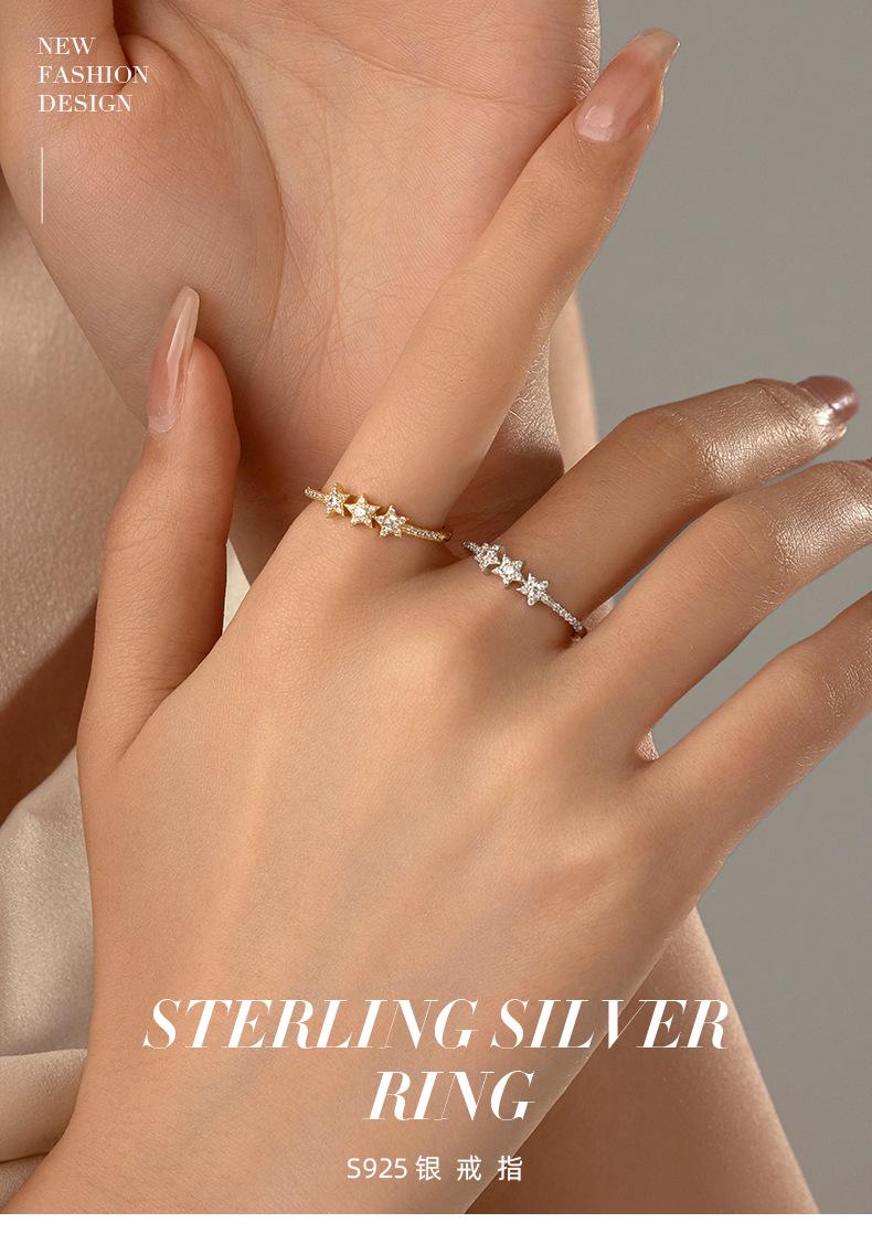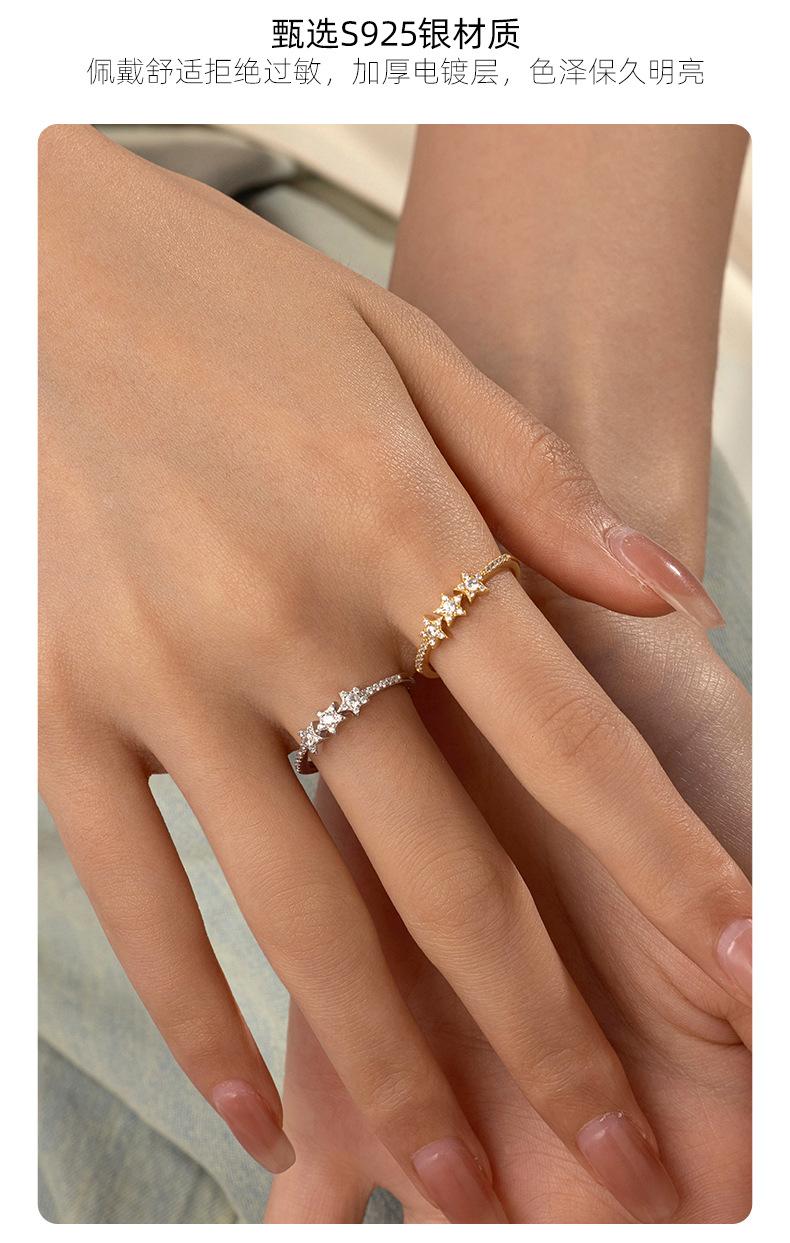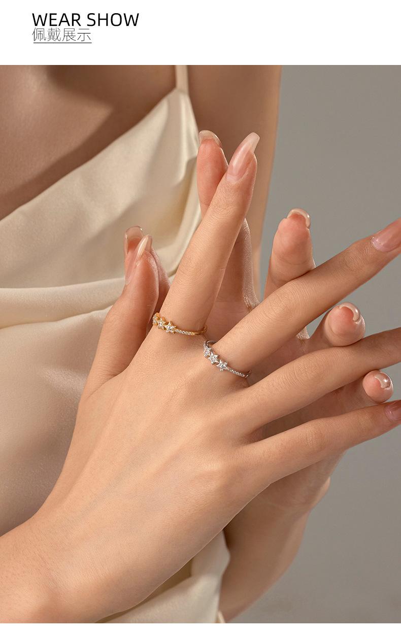 Compra Anillo de estrella de plata esterlina 925 para mujer, estilo japonés, ligero, lujoso, con diamantes Rai, anillo abierto simple de estrella de cinco puntas, sentido de alta calidad al por mayor en Joom.pro